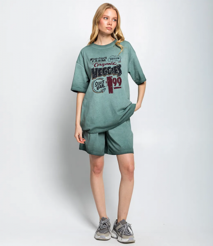 Спортивный костюм станет отличным дополнением вашего ассортимента и привлечет внимание покупателей своей энергией и динамичностью. Футболка свободного кроя с коротким рукавом, обеспечивает комфорт и свободу движений. На передней части — яркий принт в виде надписи. Шорты удобной длины, доходящие до середины бедра, с эластичным поясом. Подходят для активных движений. Изготовленный из высококачественных материалов, состоящий из 65% хлопка и 35% полиэстера, костюм обеспечивает максимальный комфорт. Ткань отличается мягкостью и воздухопроницаемостью, что позволит вашим клиентам чувствовать себя отлично даже в самые активные дни. На странице сайта предоставлена таблица размеров, что упростит покупку и поможет выбрать идеальный вариант без лишних временных затрат. Установленная цена делает этот костюм доступным для широкой аудитории, гарантируя его популярность среди клиентов. Предложите своим покупателям этот яркий и стильный спортивный костюм, который станет отличным элементом их гардероба и поднимет настроение в любой ситуации! Рост модели: 173, параметры: 84-58-89.