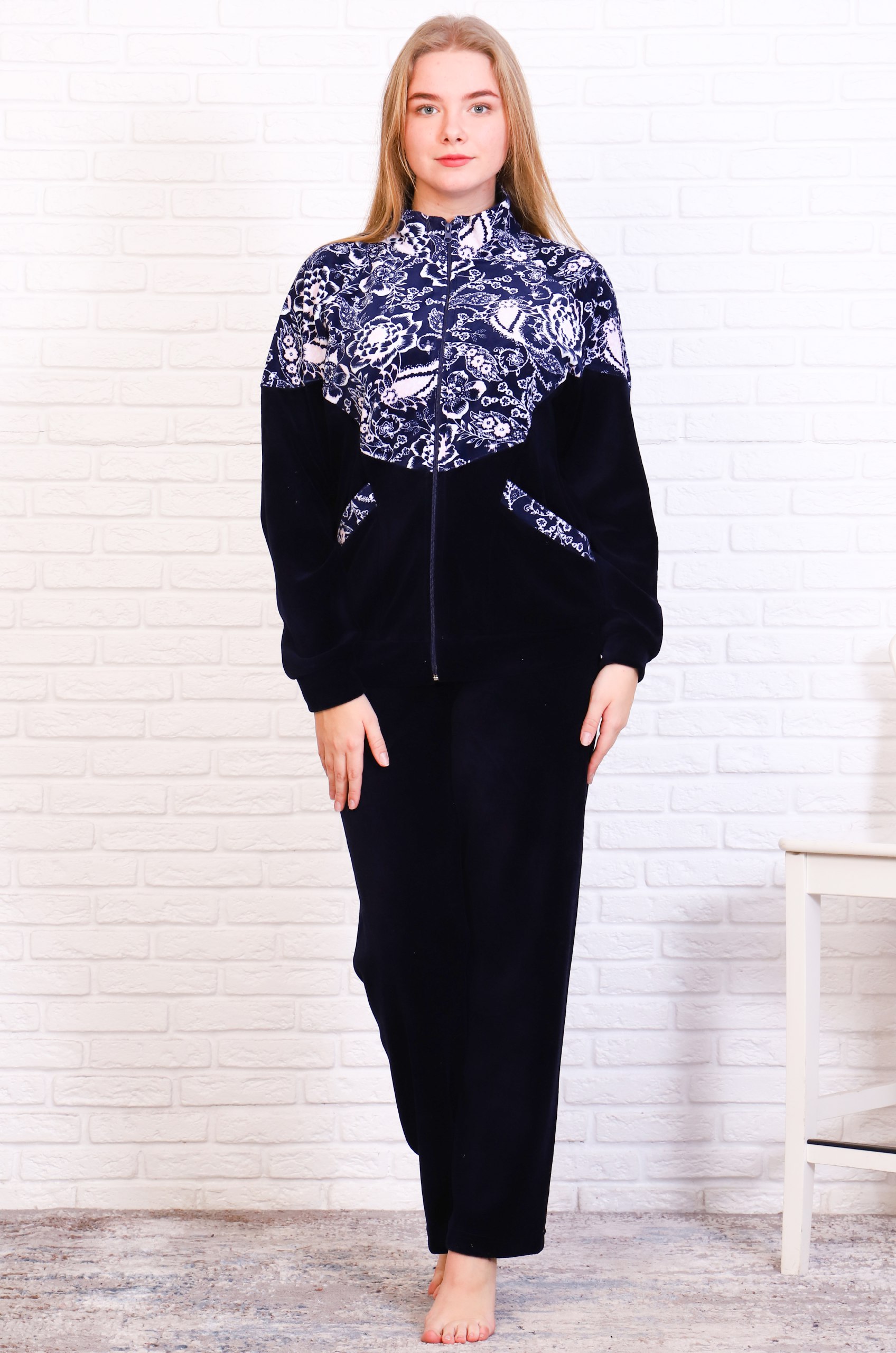 Уютный и практичный костюм подойдёт и для дома и для прогулок по парку. Толстовка на молнии, рукав - реглан, снизу на манжете. Воротник - стойка, защитит от ветра, удобные боковые карманы. Брюки прямого кроя, пояс на резинке.