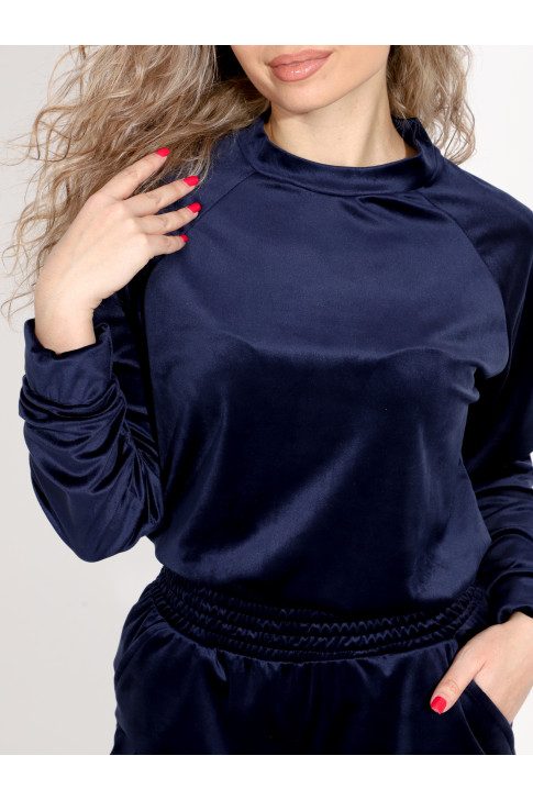 Женский костюм из мягкого велюра. Брюки с высокой посадкой на поясе и с манжетами -широкой резинке. Кофта прямая, на манжете, рукав реглан.