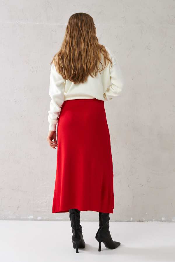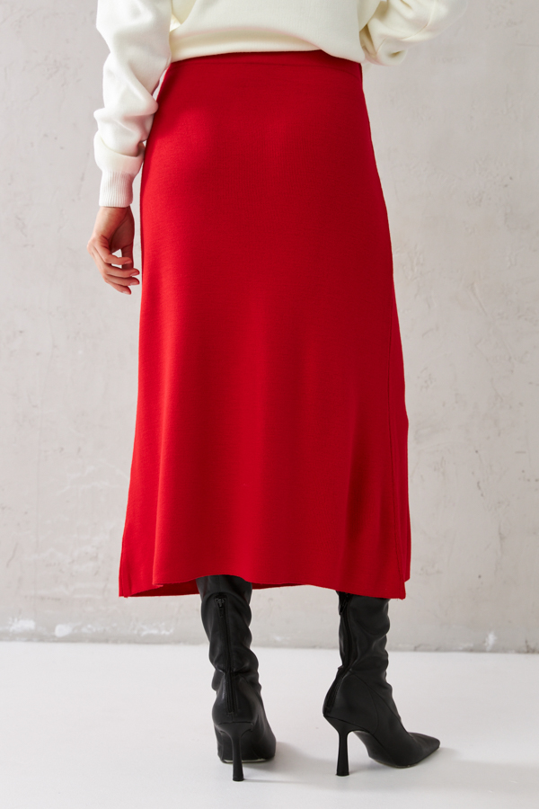 Юбка, расширенная книзу с эластичным поясом. Изделие выполнено из мягкой структурированной пряжи.