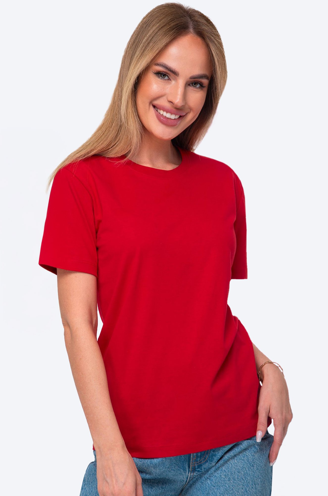 Одно..показатьтонная женская футболка – тот случай, когда не нужно придумывать, что надеть. Красная футболка универсальна. Классическая модель с коротким рукавом выполнена из натурального 100% хлопка.