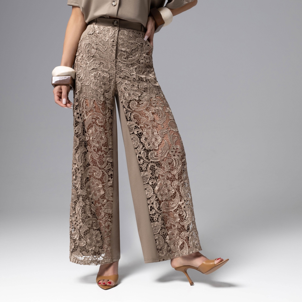 Благородство в каждом движении. Тончайшее кружево подвижно и с каждым шагом будет играть со взглядом смотрящего. Интригующая прозрачность и изысканная нежность материала никого не оставят равнодушным. Кюлоты многослойные в комбинации материалов. Есть внутренняя часть в виде шорт. Посадка на талии, колоты застегиваются на пуговицу. Есть шлевки. Изделие с карманами.