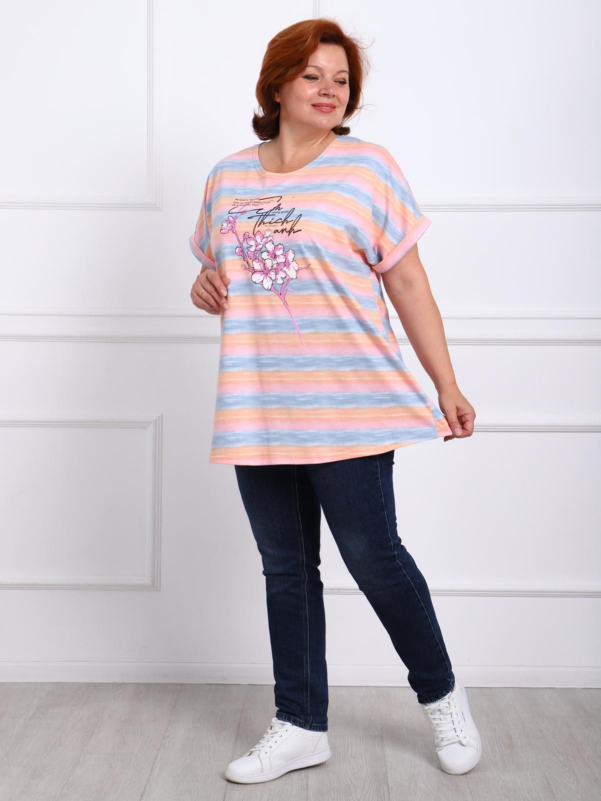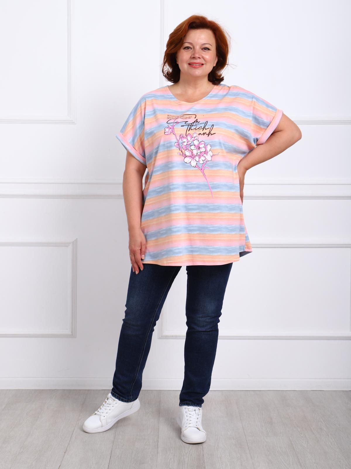 Футболка женская свободного силуэта со спущенным рукавом с манжетом.