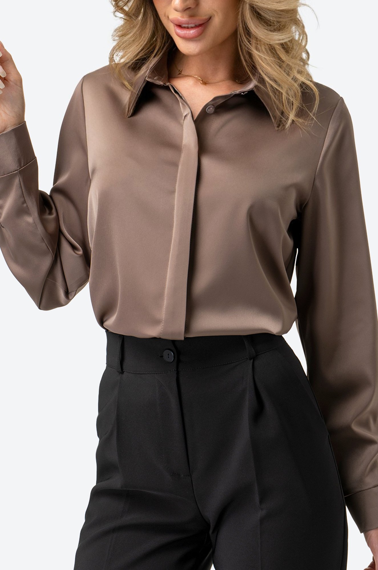 Рубашка короткая, немного ниже пояса, рукава нормально длинные, ткань-обычный ацетатный шелк, ничего особенного. В общем- нормальная. Не большемерит.