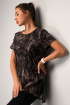 Женская футболка с коротким рукавом выполнена из натурального 100% хлопка. Асимметричная длинная спинка и кокетливые разрезы по бокам делают удлиненную футболку для женщин не только стильной, но и удобной. Свободный крой туники подарит ощущение легкости и полную свободу движений.