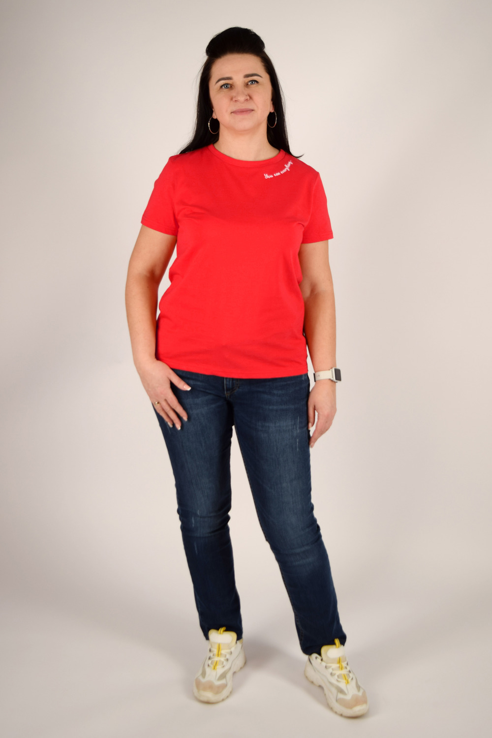 Принт нанесен путем шелкотрафаретной печати, поэтому долговечен, не отклеивается, не тускнеет и не трескается в процессе эксплуатации. Универсальная футболка подойдет женщинам любого возраста, прекрасно комбинируется с различными предметами гардероба, ее можно сочетать с юбками, джинсами, брюками, шортами. Футболка с модным принтом будет превосходным недорогим подарком по любому поводу, в ней вы в любой ситуации будете выглядеть современно. Отлично подходит как для повседневной носки, так для офисного стиля.