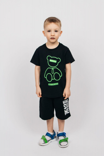 Футболка для мальчика выполнена из 100% хлопка. Футболка прямого силуэта, с втачным коротким рукавом. Благодаря эластичной горловине, выполненной из рибаны, футболку удобно снимать и надевать. На полочке принт Шелкография. Надпись переводится как Маленький человек. Материал не растягивается и не деформируется.