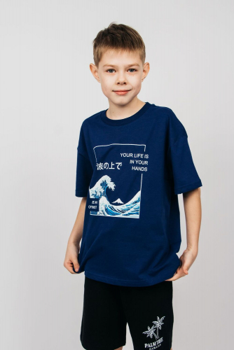 Шорты для девочки прямого силуэта из кулирки. Пояс отрезной в цвет изделия, выполнен из кашкорсе с эластичной тесьмой внутри. По поясу шорт вставлен плоский утягивающий шнурок. Низ изделия обработан швом в подгибку. На передней левой половинке шорт принт шелкография.