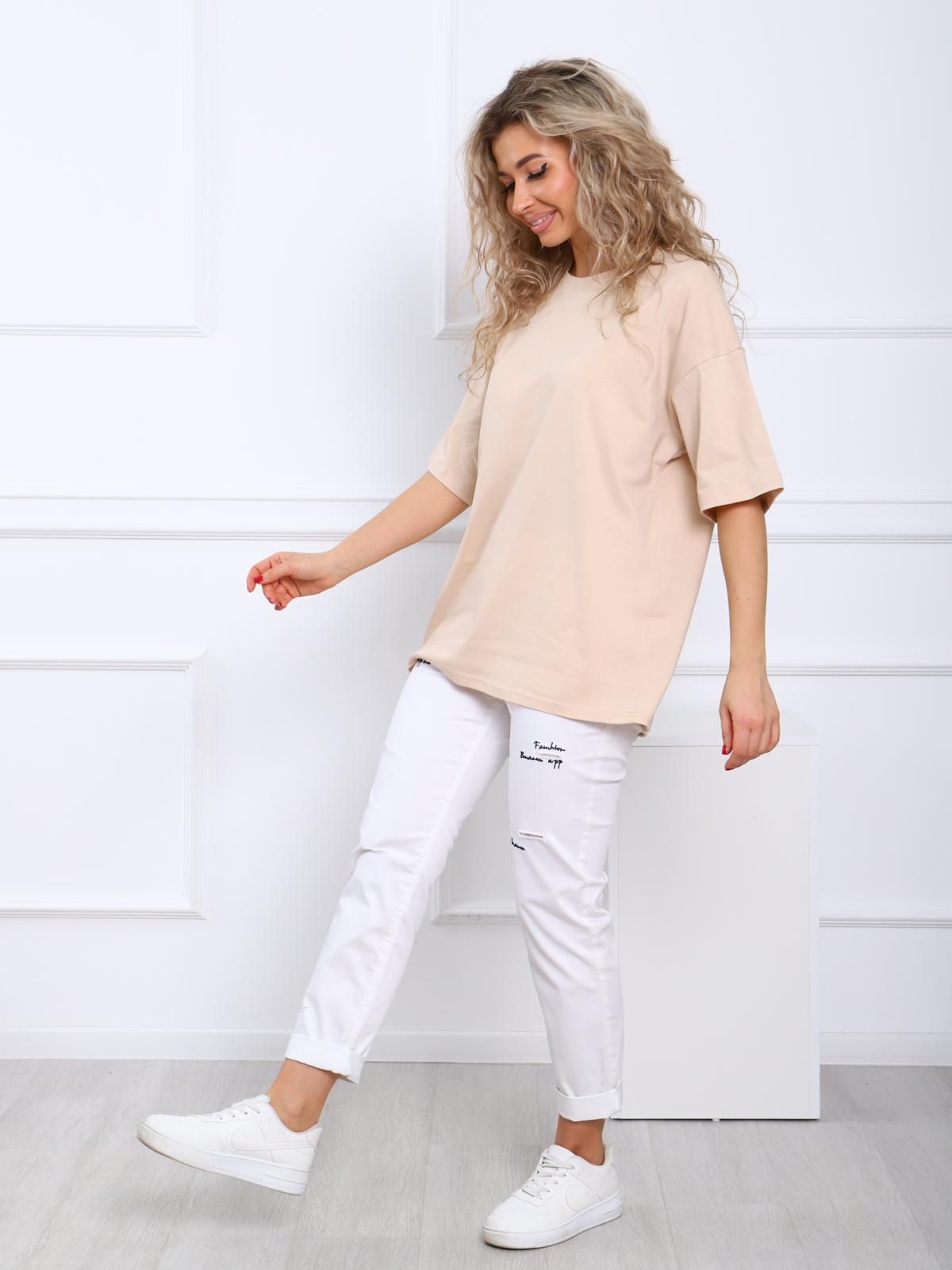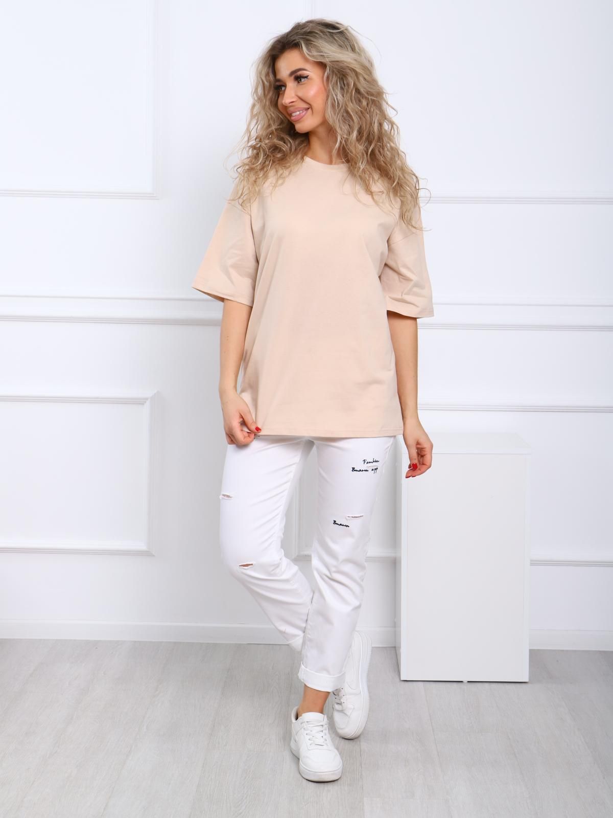 Стильная футболка прямого кроя оверсайз - воплощение свободы, естественности и смелости. Наша футболка не сковывает движений, отлично садится на любой тип фигуры и, благодаря прямому крою, подойдёт беременным девушкам. Спущенное плечо, укороченный рукав, круглая горловина и дышащая ткань, которая отлично проводит воздух, позволят чувствовать удобство при любых обстоятельствах. Прогулки, отдых, путешествия - базовая модель футболки подойдет на каждый день. Футболка совмещает в себе стиль и комфорт.