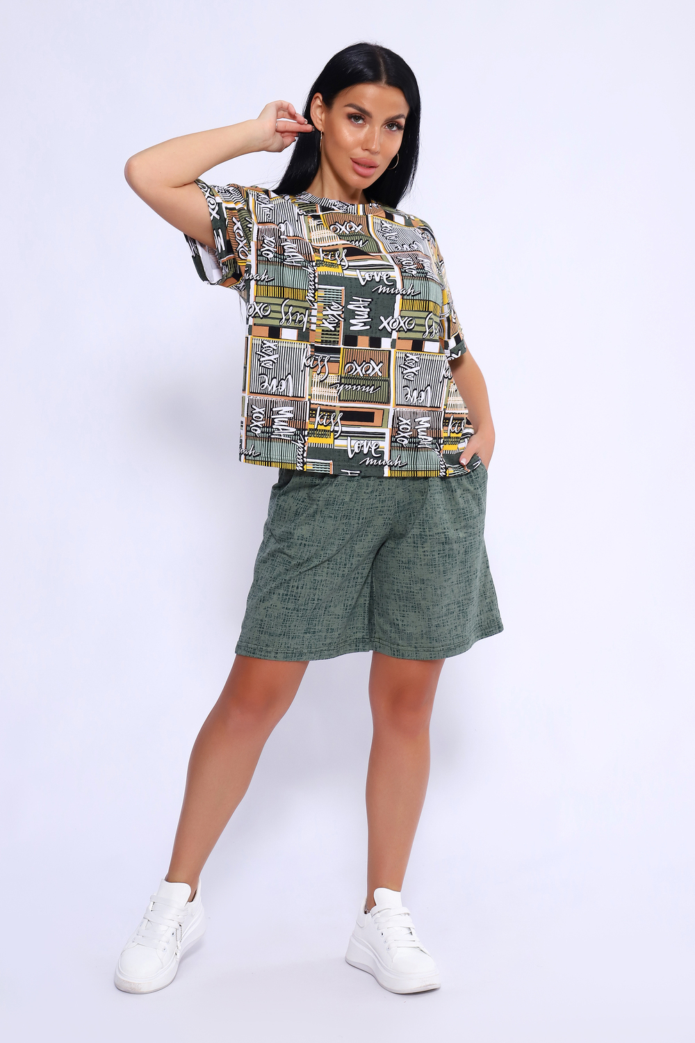 Женский домашний костюм-двойка фасона оверсайз - это стильный и очень уютный вариант, который подойдет всем без исключения. Он отлично сядет на любой тип фигуры и рост, благодаря своему свободному крою. Костюм изготовлен из высококачественного материала - кулирка (100% хлопок), который не только приятен на ощупь, но и обеспечивает комфорт во время носки благодаря своей хорошей воздухопроницаемости. Модный летний костюмчик имеет свободный крой, который не стесняет движений. Он состоит из футболки и шорт. Футболка со спущенной линией плеча и коротким рукавом, горловина круглая. Широкие шорты с эластичным поясом на резинке. Этот костюм-двойка - отличный выбор для домашнего отдыха или для летних прогулок. Он не только стильный, но и очень удобный. Так что, если вы ищете комфортный и модный вариант для своего гардероба, то этот костюм-двойка - именно то, что вам нужно!