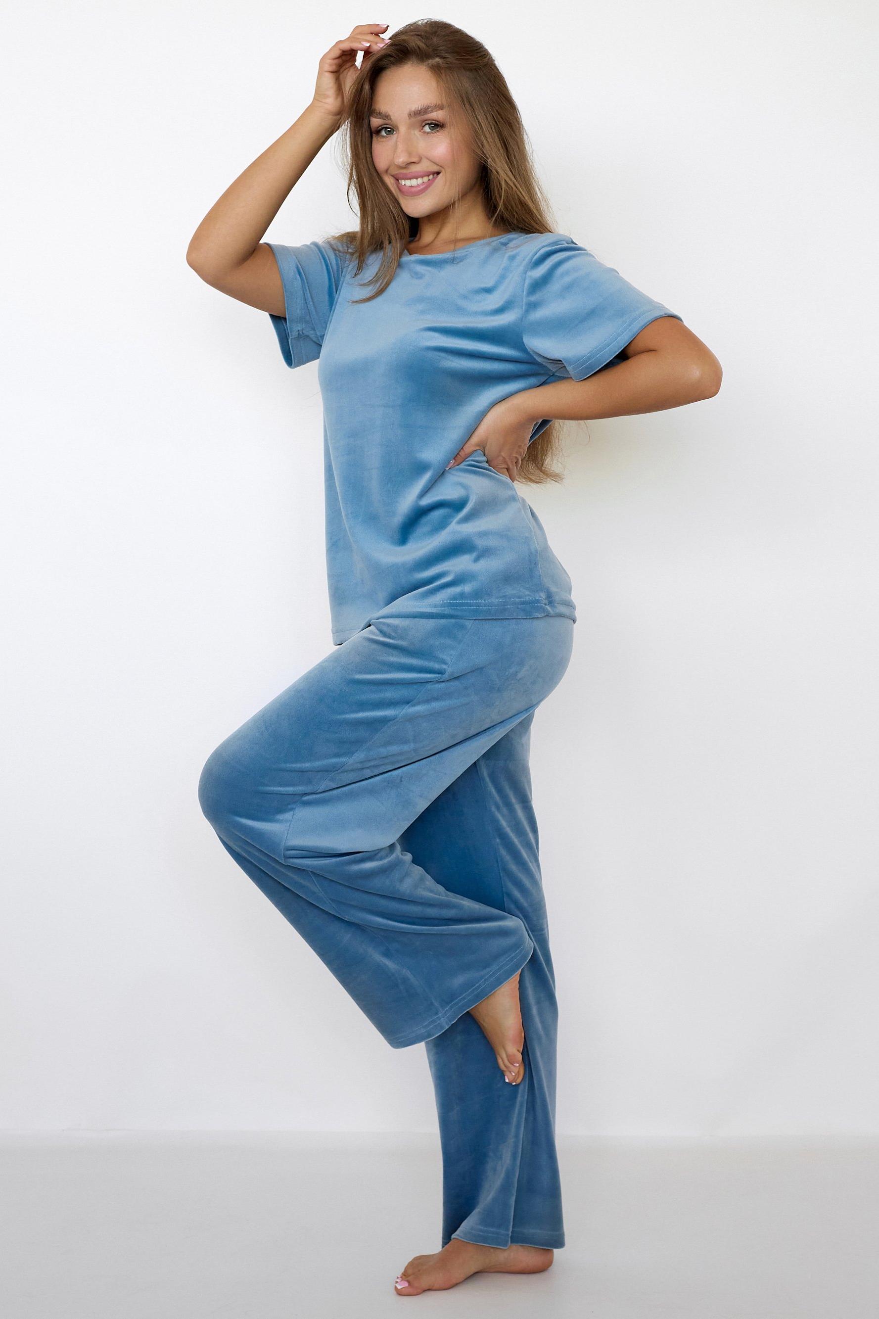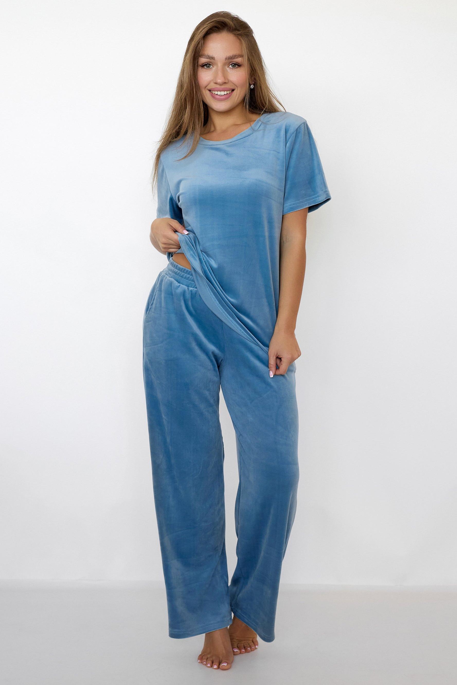 Красивый велюровый костюм для модниц Диана. Прекрасный костюм для дома, отдыха или путешествия. Состоит из футболки свободного кроя и широких брюк. Стильно выглядит на женской фигуре, ткань тактильно приятна к телу. В нем комфортно и тепло в любую погоду.