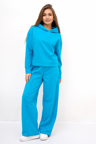 Костюм, в который можно влюбиться с первого взгляда. Белые буквы на темном синем фоне пленит своим красивым сочетанием. Сам костюм очень удобен и комфортен для ношения. Куртка прямого кроя с карманами, капюшоном и застёжкой на молнию. Основание куртки с рисунком, а кокетка и капюшон выполнены из однотонной ткани. Брюки прямые, в однотонном синем цвете. Удобную посадку изделия обеспечивает поясная резинка. Прекрасный костюм для дома, отдыха или спорта.