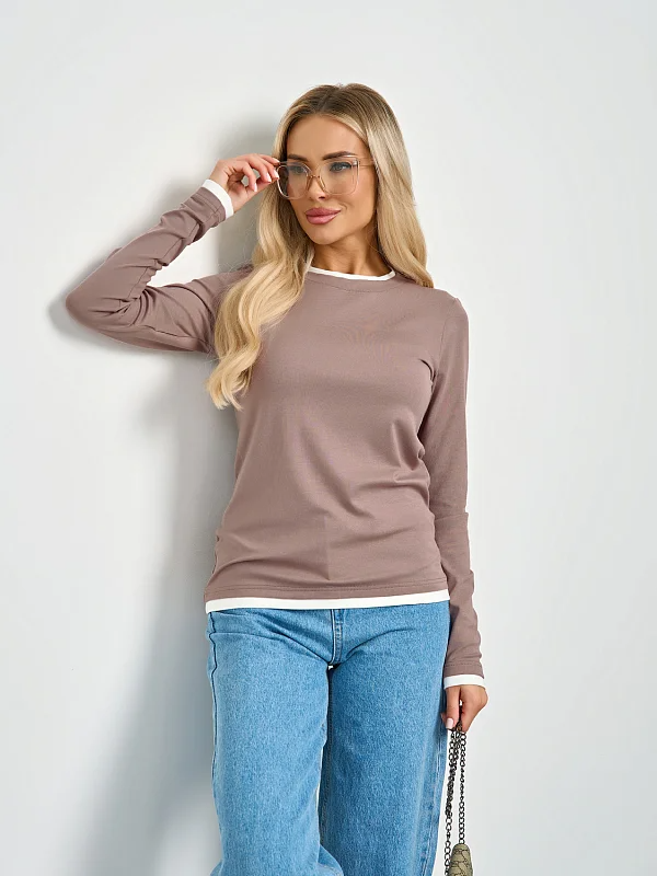 Горловина, низ рукава и низ изделия  отделаны контрастным материалом, имитирующим второй слой.