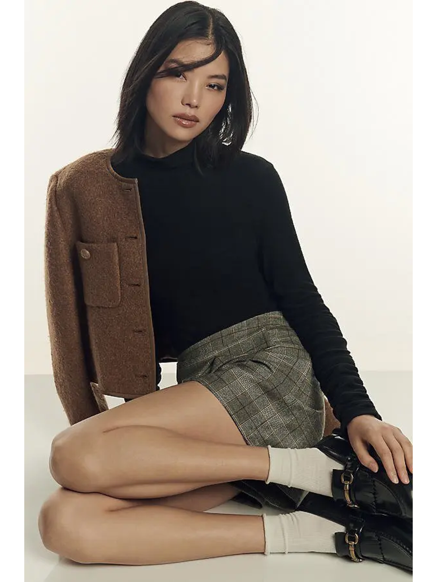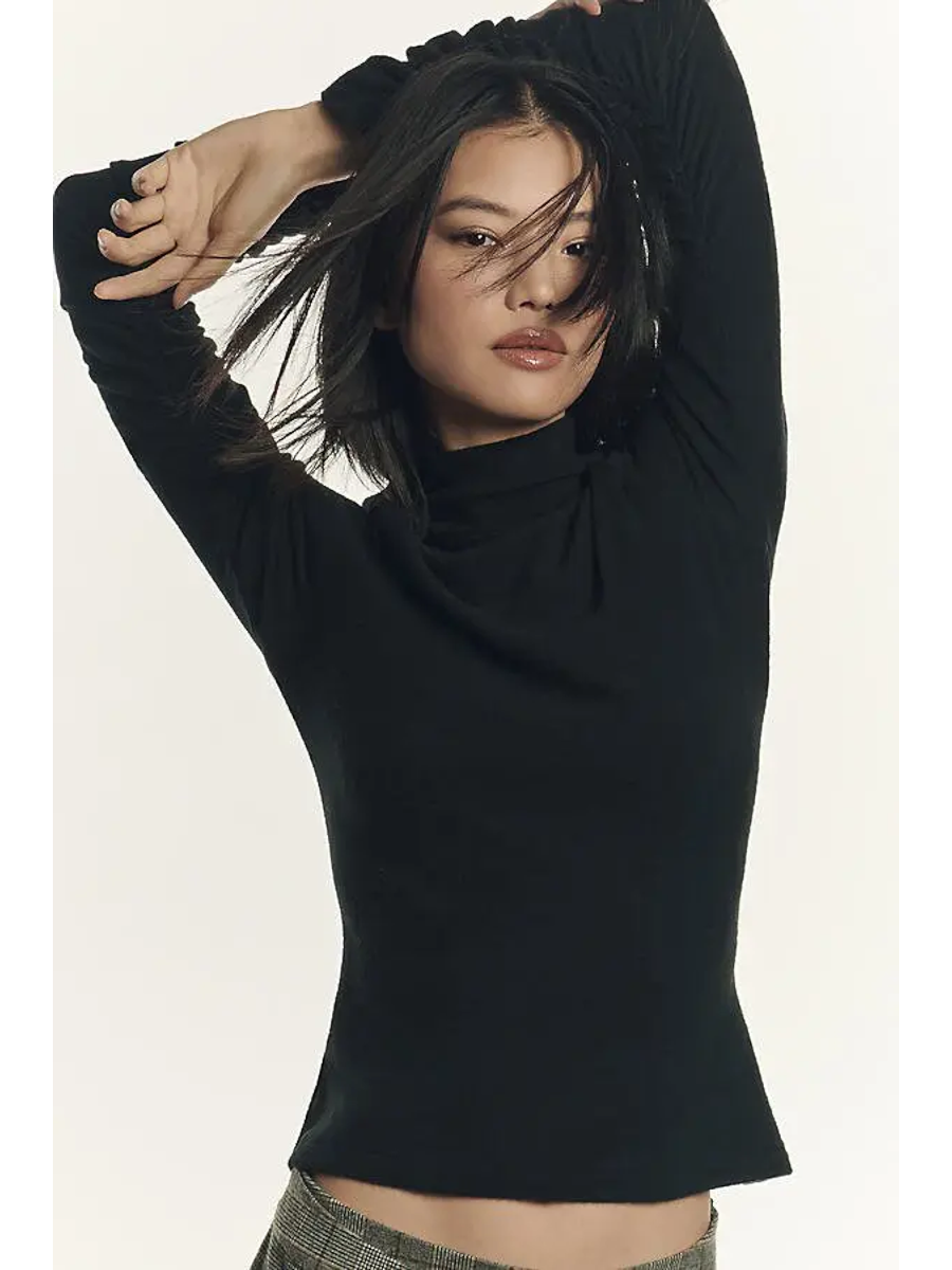 Этот топ с высоким воротом от By Anthropologie изготовлен из мягкой смеси полиэстера, вискозы и эластана.