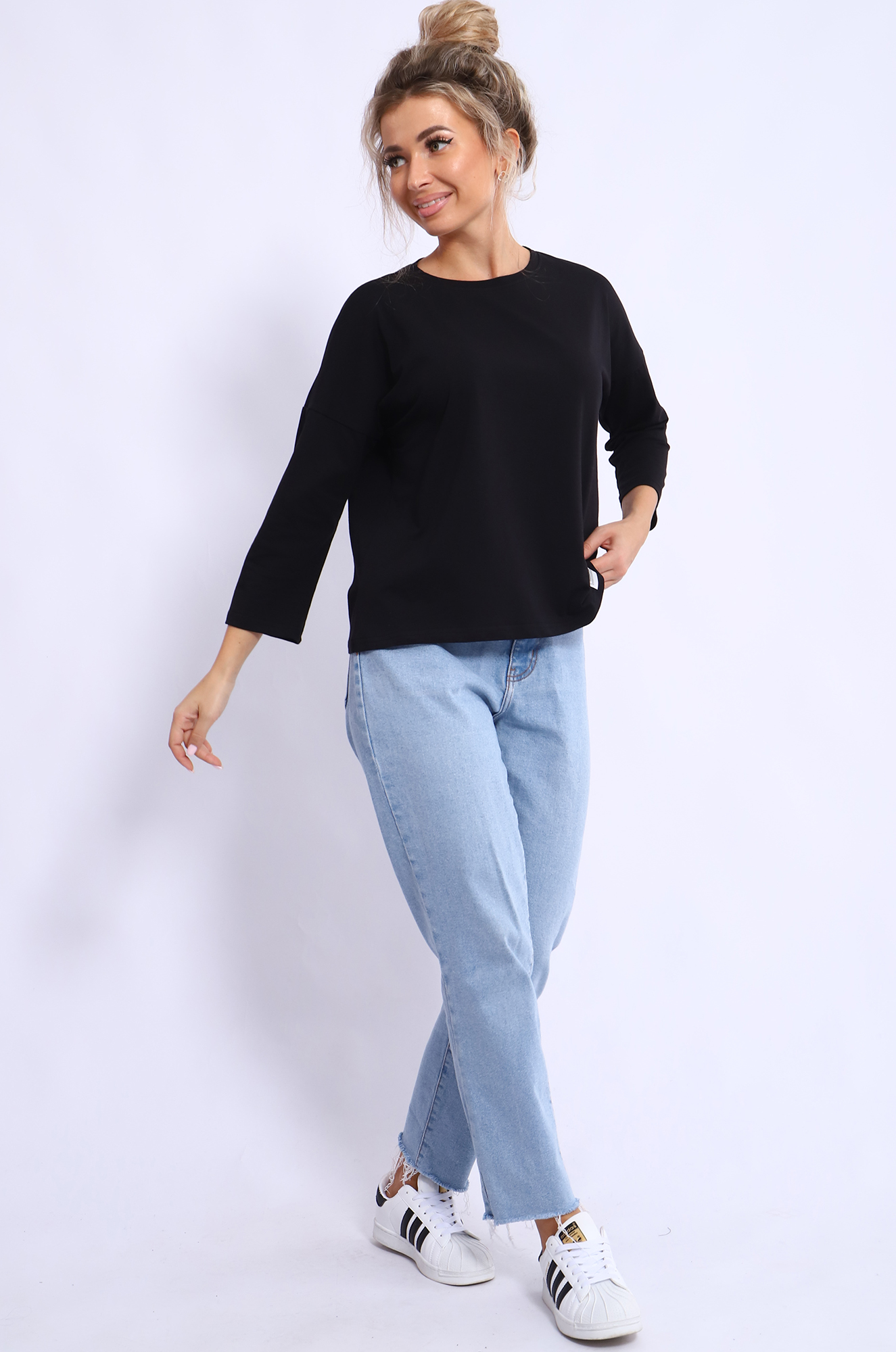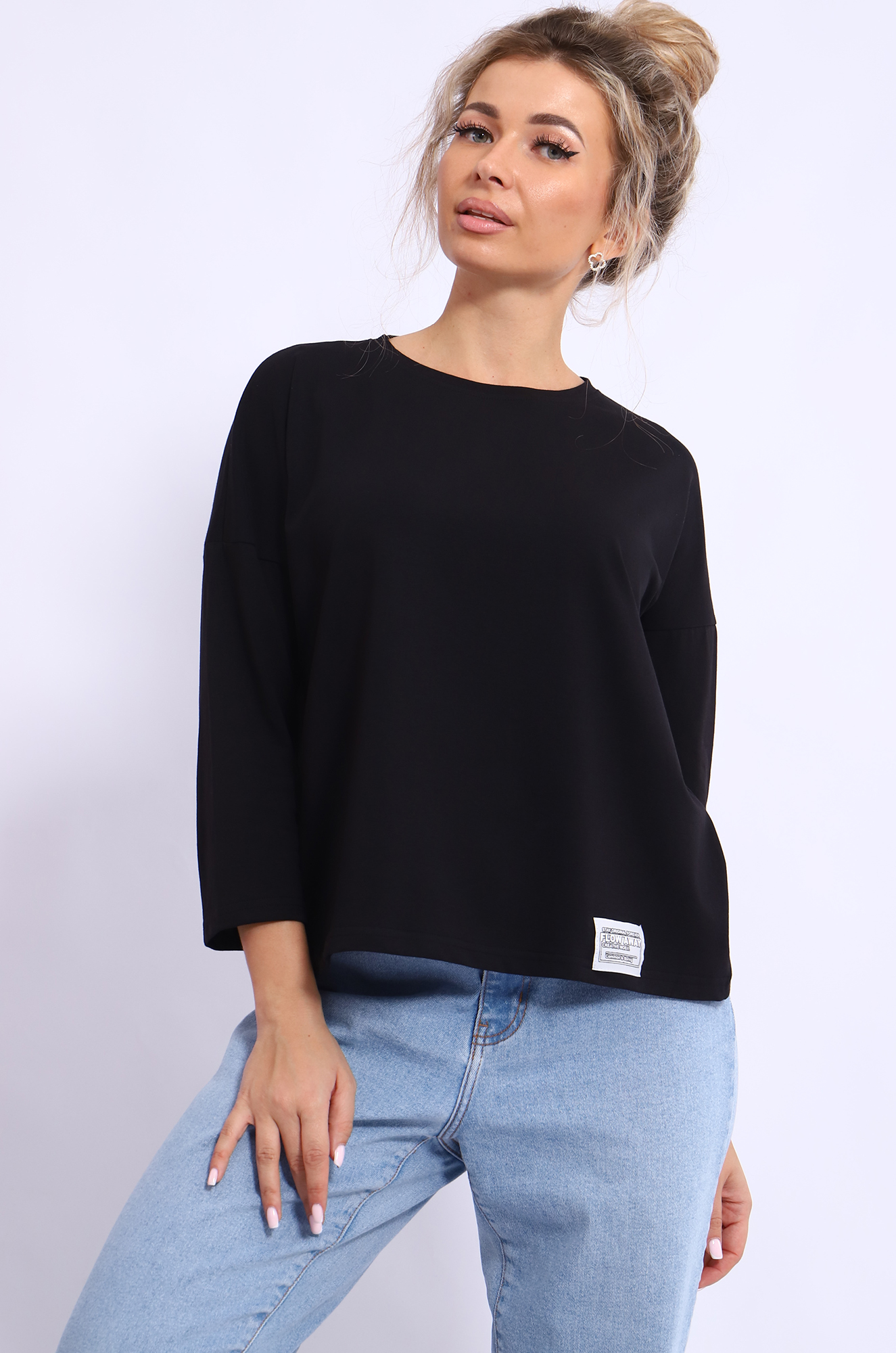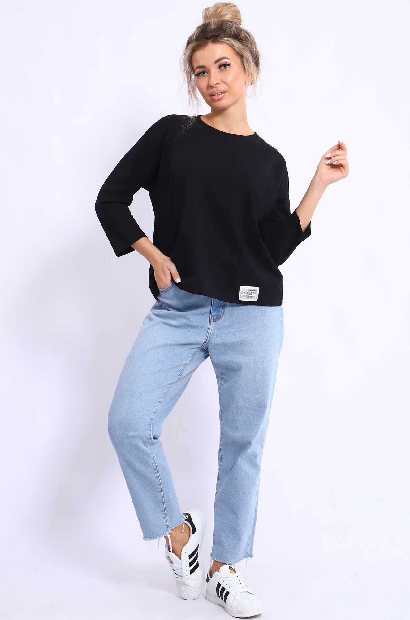 Женский лонгслив с рукавом 3/4 прекрасный вариант на прохладное время года. Модель прямого кроя со спущенным плечом. Ткань кулирка с лайкрой качества пенье.