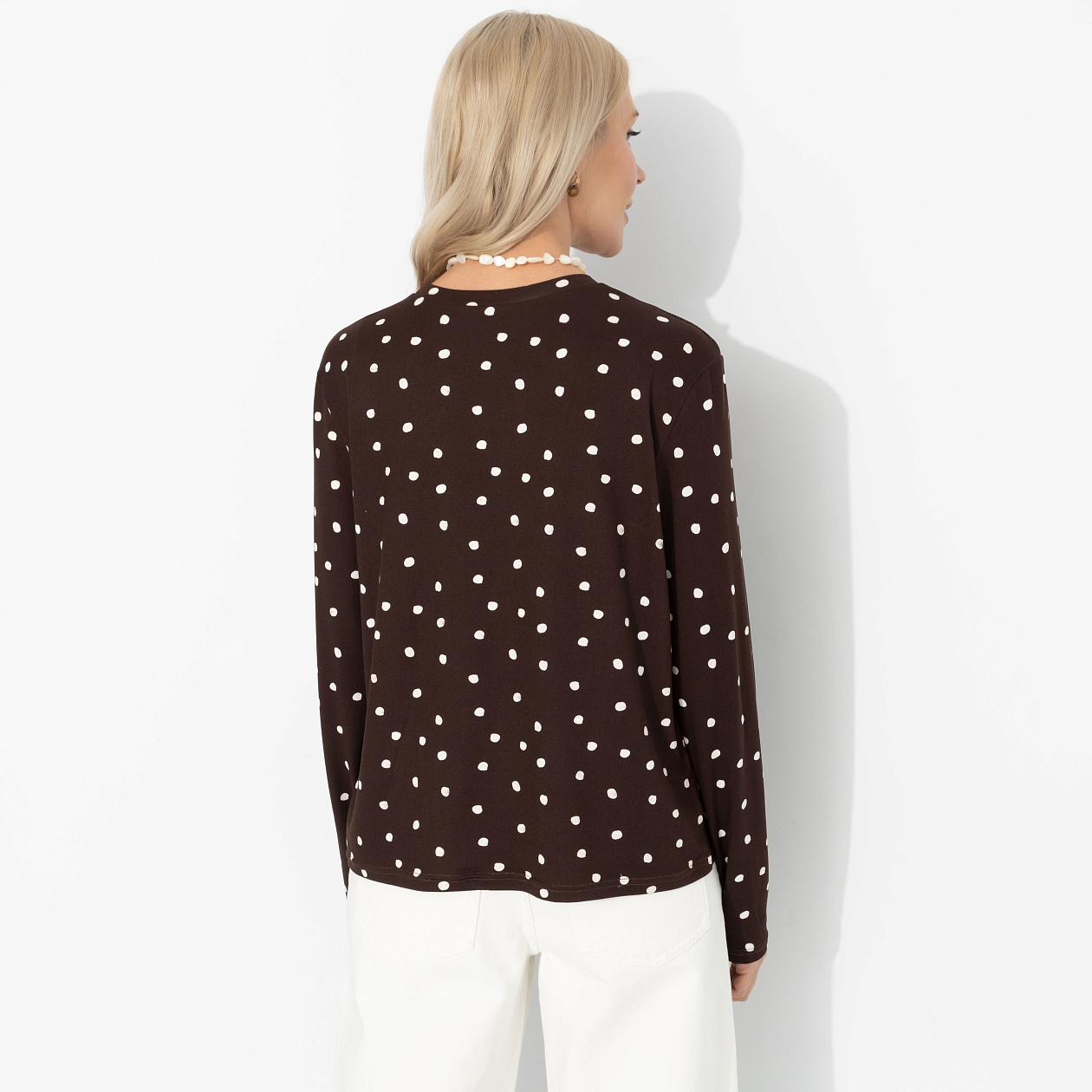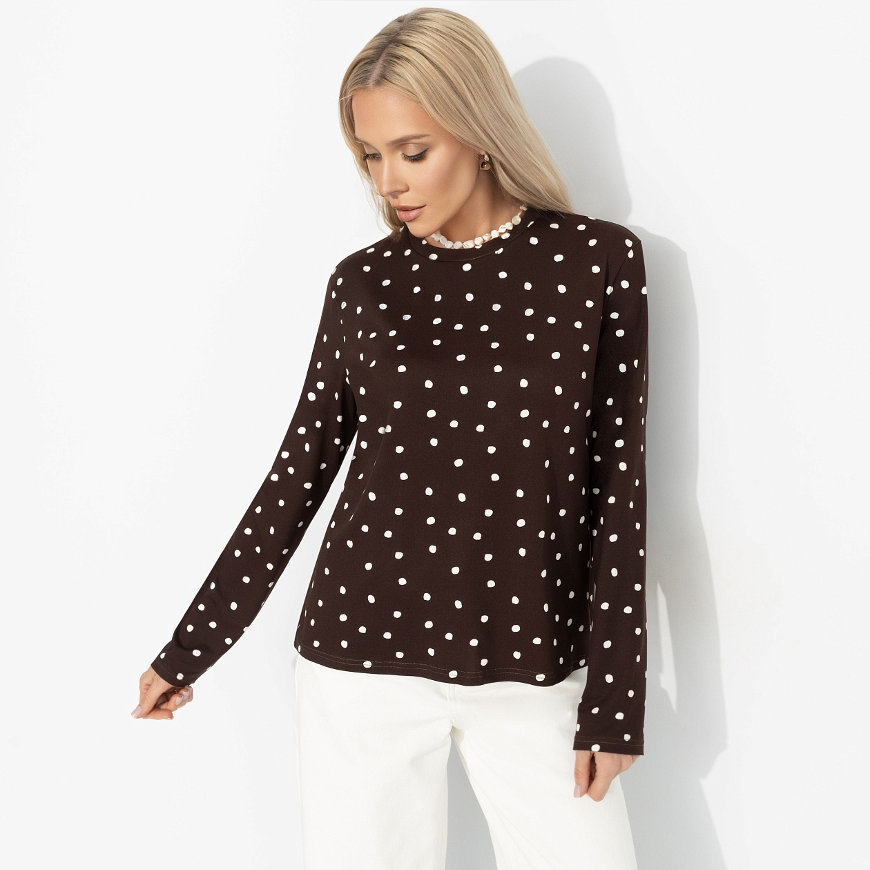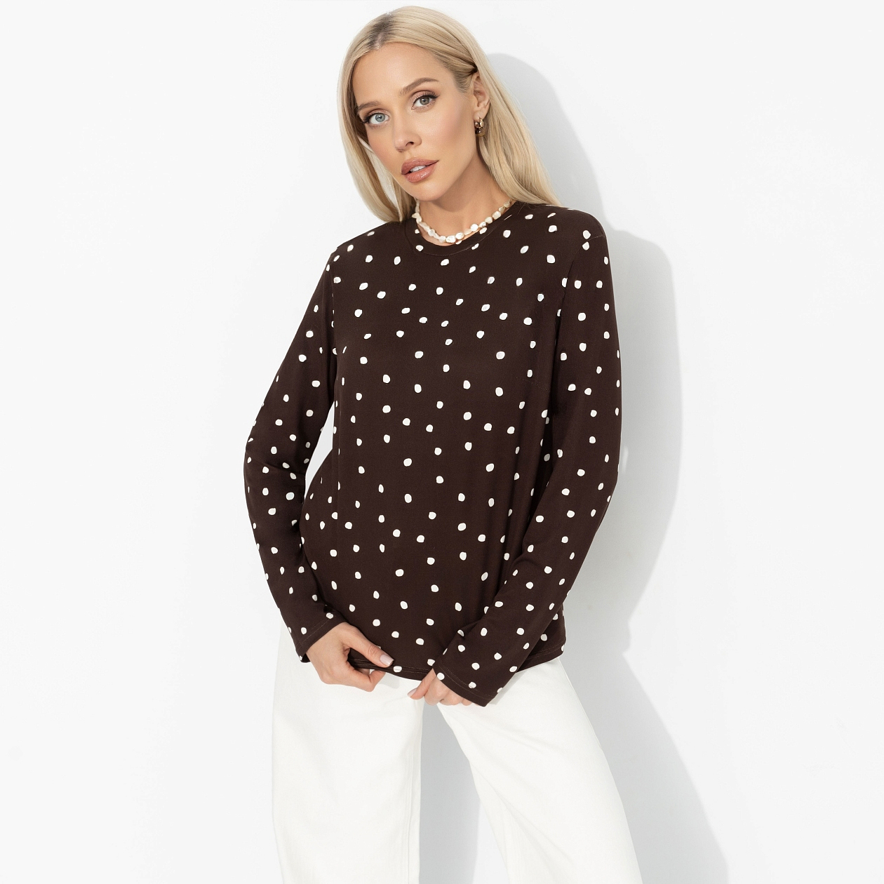 Глубокий оттенок какао – тёплый, уютный, кажется, что в него можно укутаться. Лонгслив из вискозы мягко обнимает силуэт, создавая ощущение комфорта и собранности одновременно. Он работает как база, но с характером за счёт цвета. Идеален с джинсами, костюмными брюками или юбкой. Это твой высокий стандарт – без компромиссов.