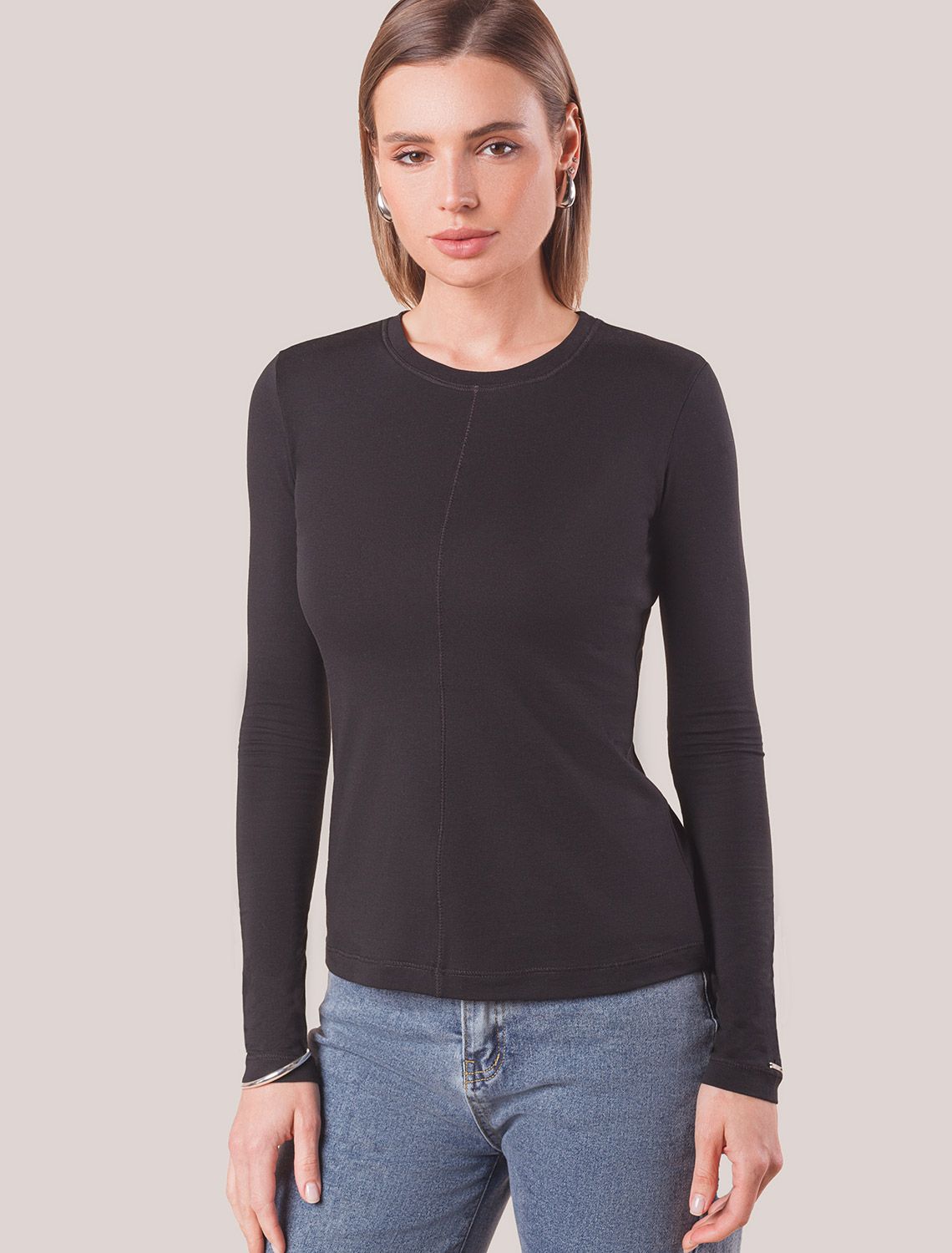 Лонгслив выполнен из премиального хлопка с эластаном. Модель прилегающего силуэта идеально сидит по фигуре. Хорошо подойдет первым слоем в многослойные образы. Фишкой изделия служат декоративные швы и фирменный металлический логотип бренда на рукаве. 92%Хлопок 8%ПУ