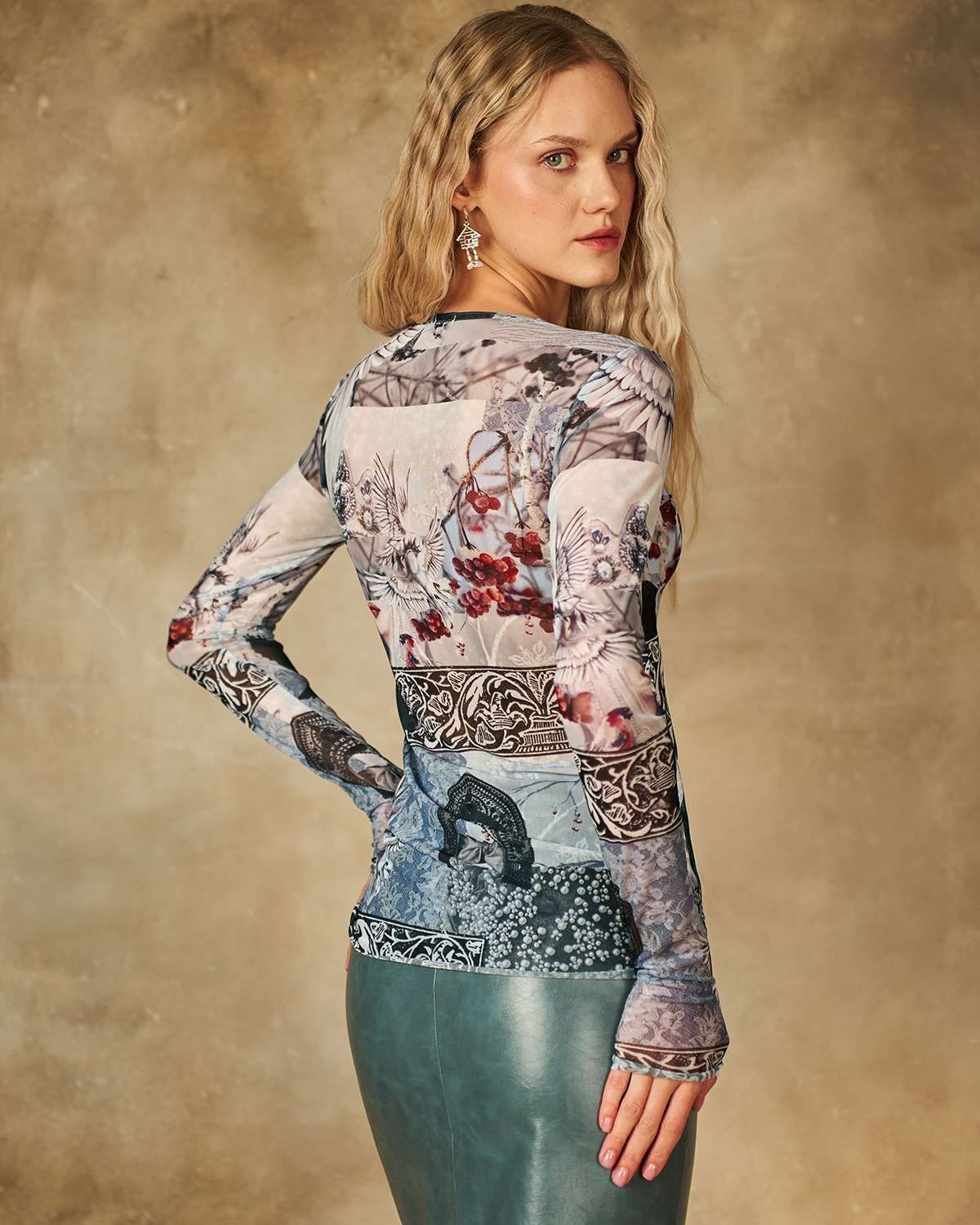 Лонгслив женский из сетки с принтом. Его можно надевать под платье, жакет, кардиган, жилет или даже футболку.