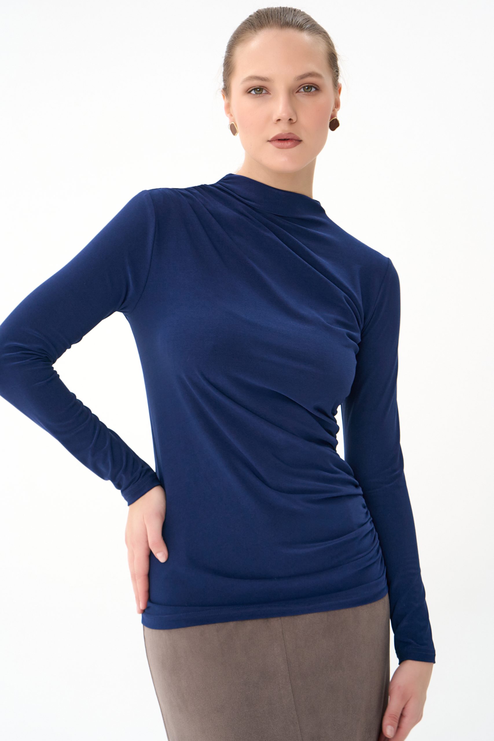 Этот лонгслив станет универсальной базой в гардеробе, добавляя образам женственность и аккуратный акцент за счёт выразительной драпировки и насыщенного цвета