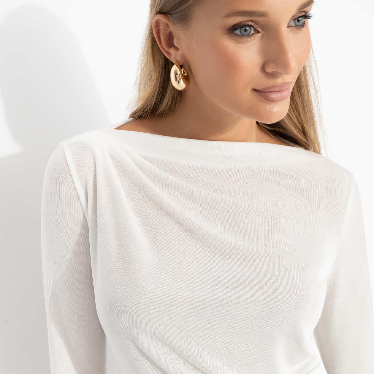В основе её аристократичного, небольшого гардероба лежал безупречный белый лонгслив с акцентными сборками. Его идеальный крой выдавал безукоризненный вкус и внимание к качеству. Он был холстом, на котором рождались образы – от строгих до небрежных. Лонгслив ЧАРУТТИ как заявлением о том, что истинная роскошь кроется в сдержанности и в деталях. Лонгслив классического кроя. Приталенный силуэт. Изделие слегка удлиненное. Хорошо смотрится в заправленном виде.
