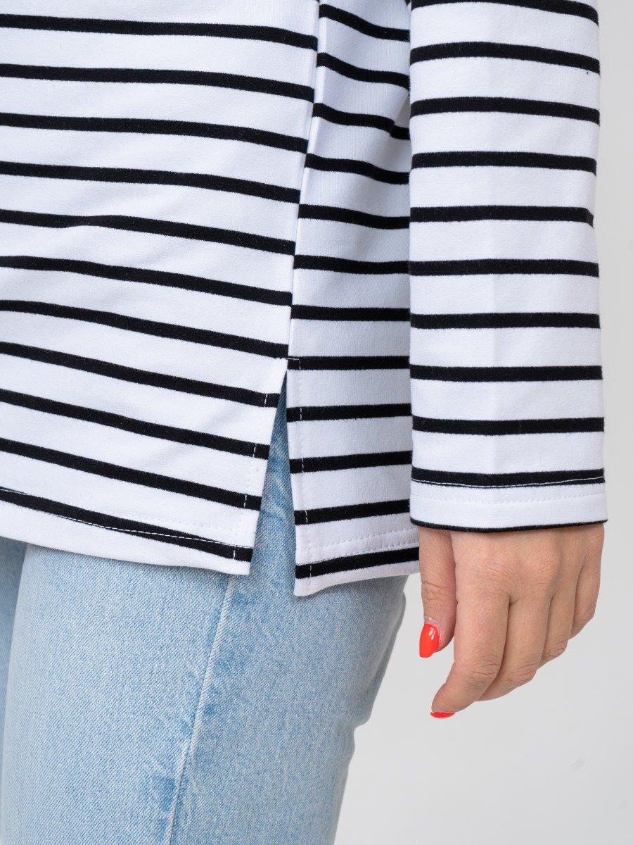 Базовая тельняшка идеально подойдет для составления множества модных аутфитов. Тельняшка в современном прочтении-это обязательно "оверсайз", качественный и невероятно комфортный трикотаж, удлиненные рукава и безупречная посадка! Модель выполнена из европейского трикотажного полотна, качества пенье.