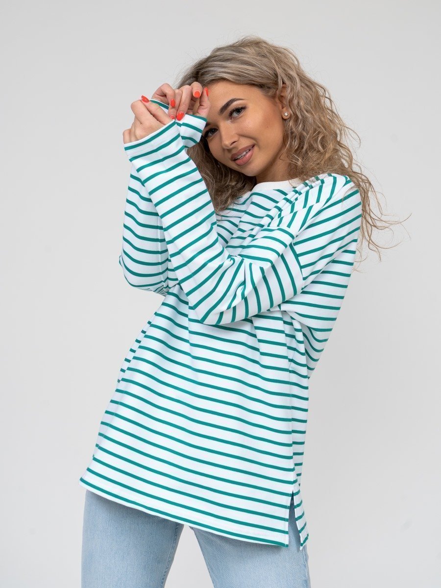 Базовая тельняшка идеально подойдет для составления множества модных аутфитов. Лонгслив в современном прочтении-это обязательно "оверсайз", качественный и невероятно комфортный трикотаж, удлиненные рукава и безупречная посадка! Модель выполнена из европейского трикотажного полотна, качества пенье.