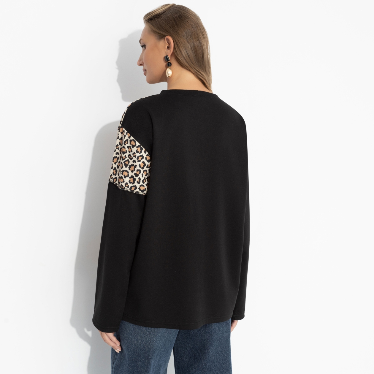 Она спешит навстречу утру – кофе на вынос, город в движении, а на ней колорблок, который невозможно не заметить. Желтый – энергия, леопард – игра, чёрный – уверенность. И всё вместе – идеальная гармония, в которой хочется жить каждый день. Лонгслив из трикотажа с мягкой посадкой и эффектными швами наружу. Контраст фактур и оттенков подчёркивает индивидуальность, а эластичный материал обеспечивает комфорт в движении.