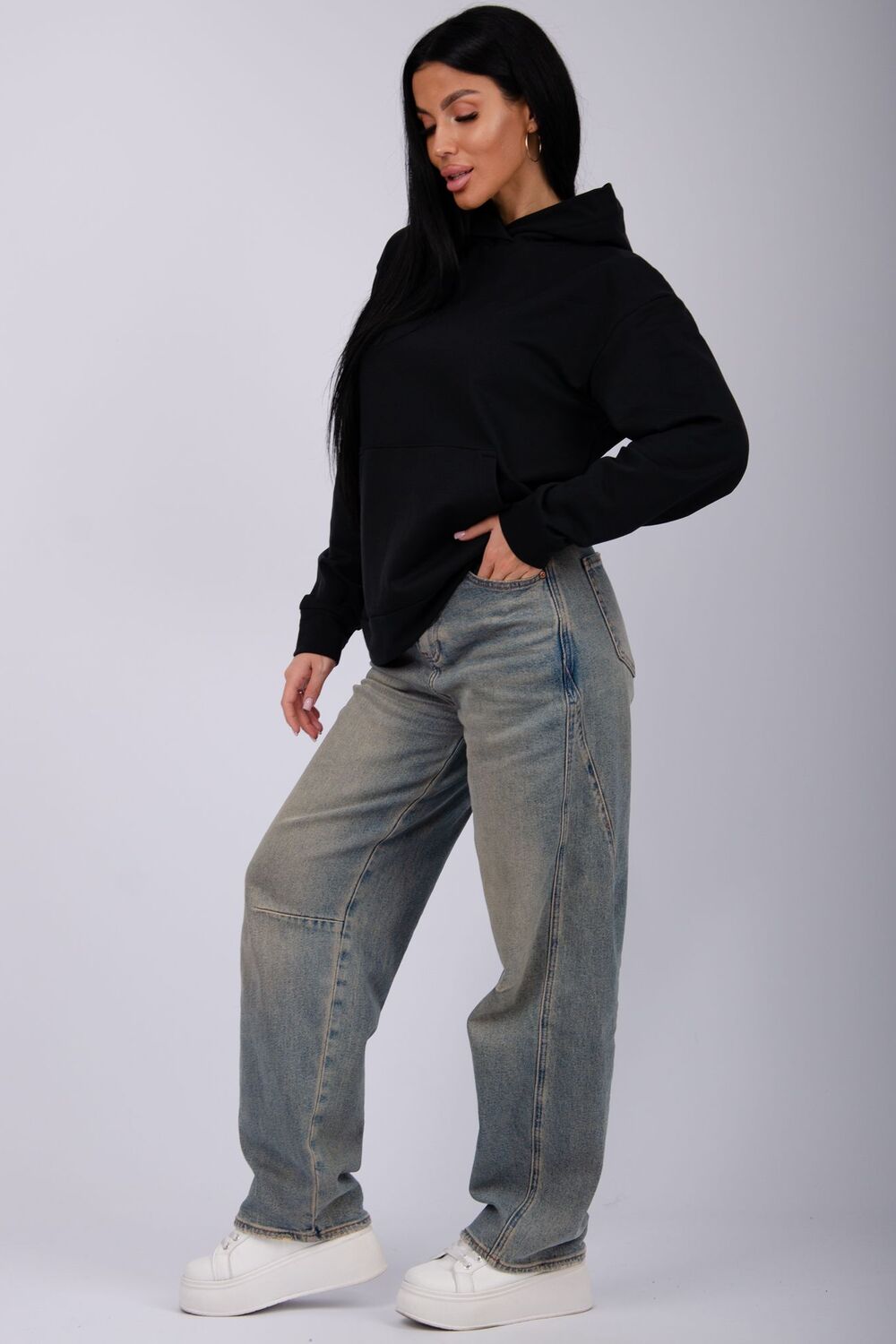 Худи имеет оверсайз крой, что придает ему стильный и модный вид. Оверсайз модель позволяет свободно двигаться и чувствовать себя уютно во время носки. Вы сможете легко сочетать его с любыми стилями одежды - от спортивного до повседневного.