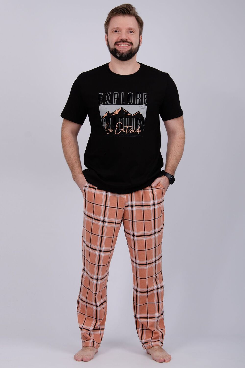 Пижама мужская: футболка прямого кроя с короткими рукавами с принтом на полочке, брюки прямые, с карманами в боковых швах. Цвет: черный/коричневый; Материал: кулирка;кулирка; Состав: 100% хлопок.