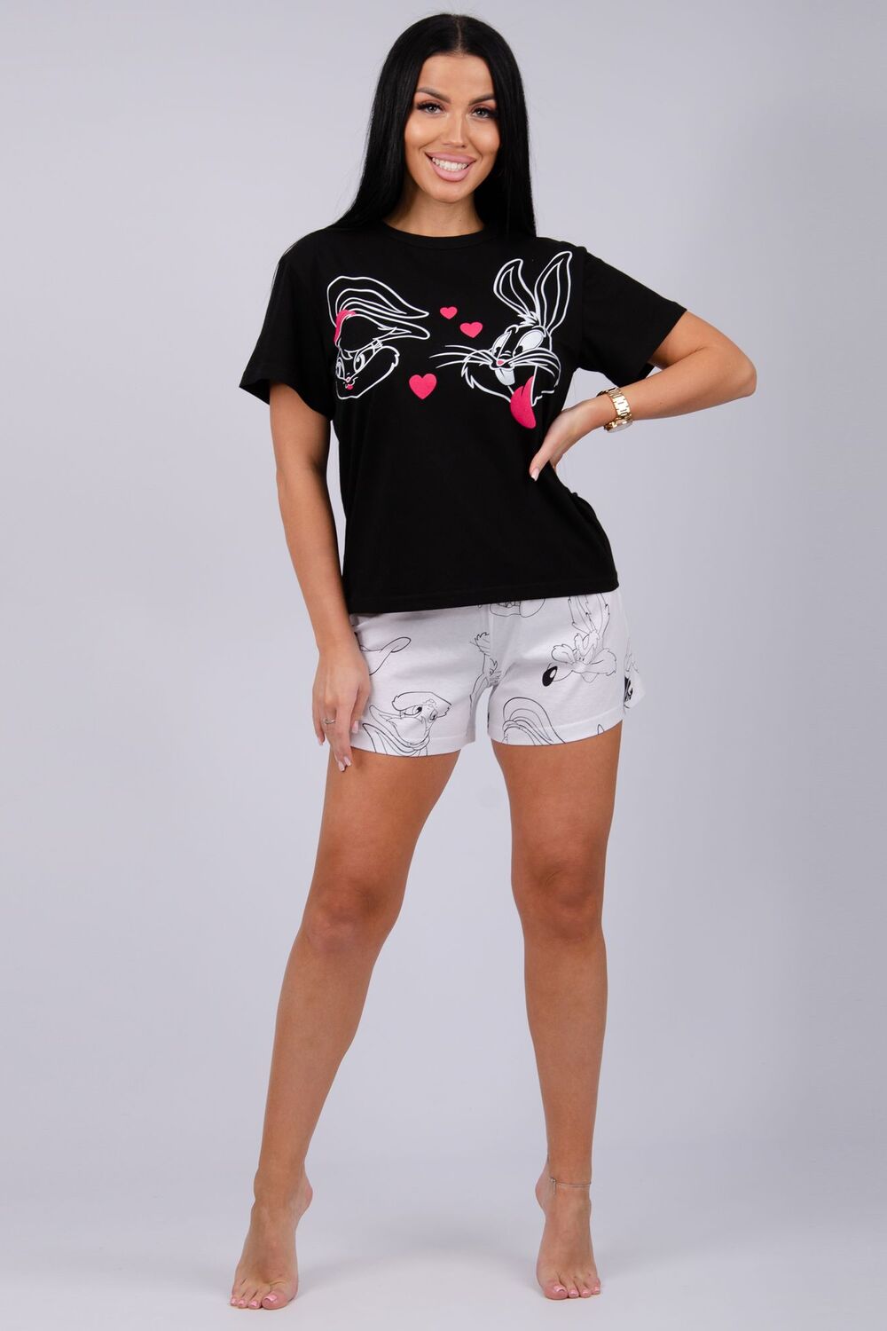 Пижама женская состоит из футболки с коротким рукавом и шортов. Футболка из однотонной кулирки с красивым принтом, шорты свободного покроя из ткани кулирка. Цвет: ; Материал: кулирка; Состав: 100% хлопок.