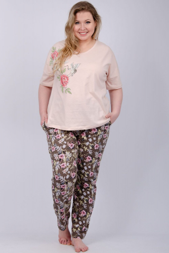 Пижама женская состоит из футболки с коротким рукавом и шортов. Футболка из однотонной кулирки с красивым принтом. Цвет: черный; Материал: кулирка;кулирка; Состав: 100% хлопок.