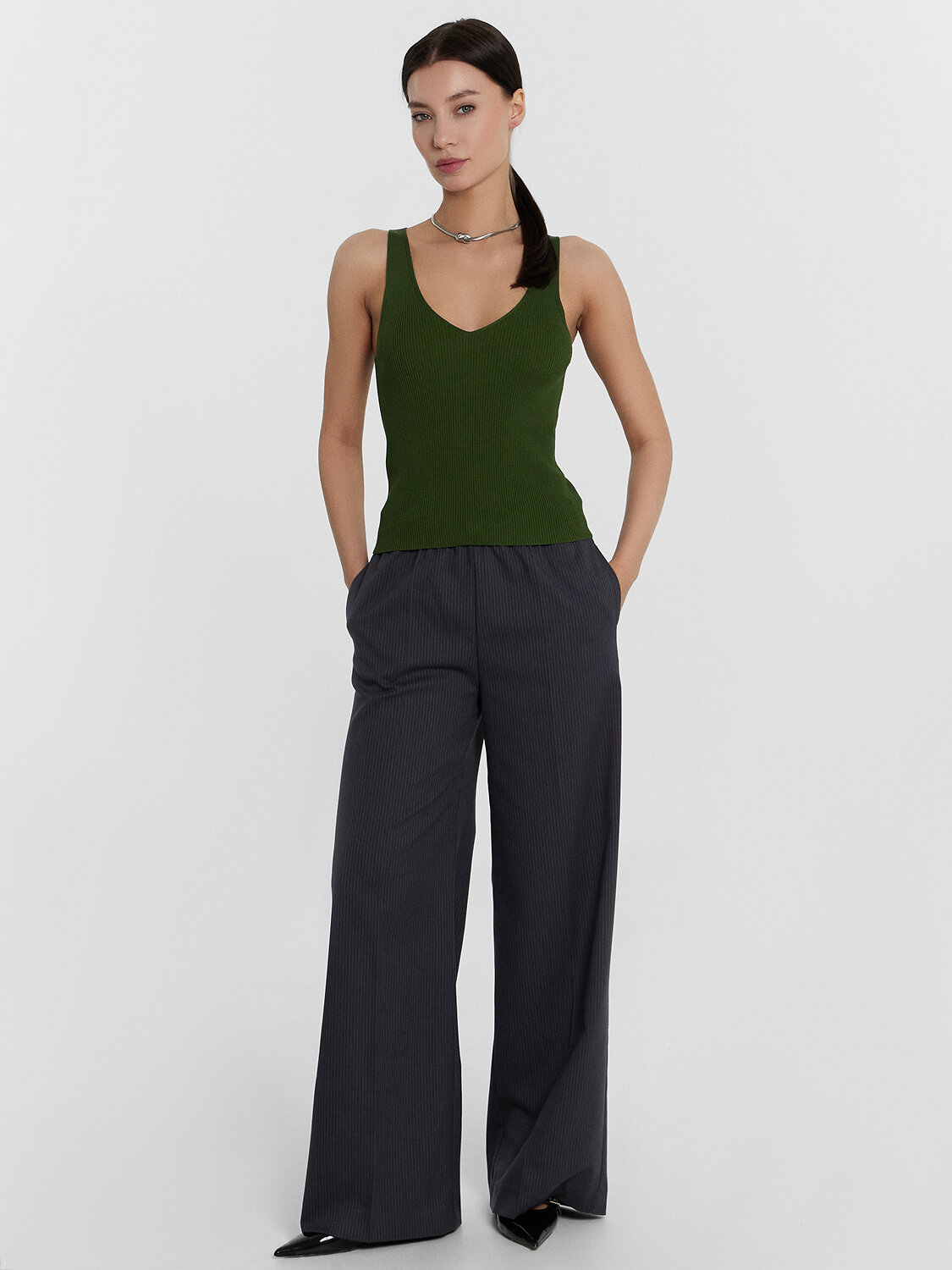 Этот женский топ в рубчик станет стильным дополнением вашего гардероба. Приталенный крой и V-образный вырез горловины подчеркивают фигуру и добавляют элегантности. Модель выполнена из вискозы и нейлона, что обеспечивает мягкость, комфорт и долговечность. Отличный выбор для создания стильных и уютных образов на каждый день. Такой топ прекрасно сочетается с юбками, брюками и джинсами!