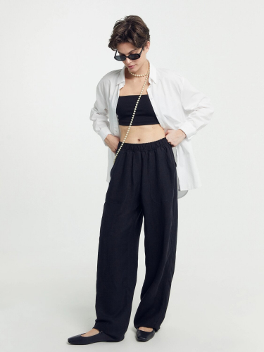 Брюки женские прямого силуэта из ткани со льном.