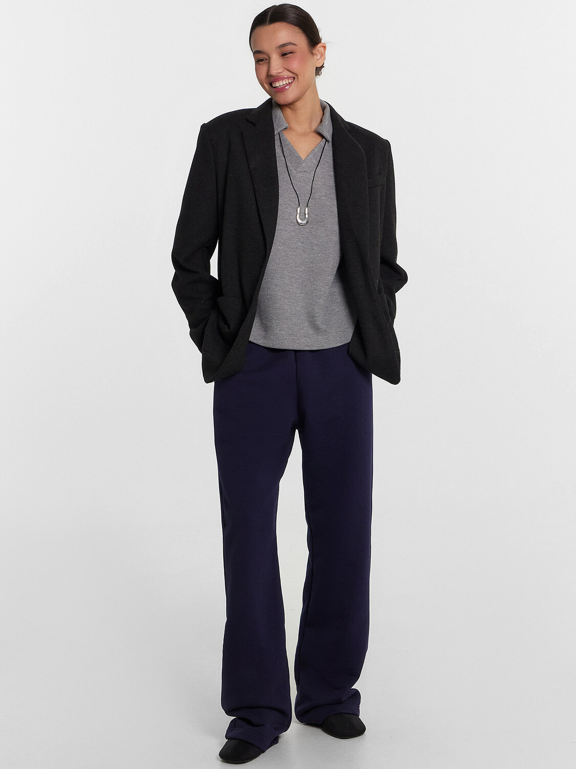 Стильные женские брюки, которые идеально подойдут для вашего повседневного гардероба. Они выполнены из высококачественного футера, что делает их мягкими и приятными на ощупь. Футер отлично сохраняет тепло, обеспечивая комфорт в прохладную погоду, и при этом позволяет коже дышать. Брюки прямого, свободного силуэта со средней посадкой создают элегантный и расслабленный образ. Пояс с эластичной тесьмой внутри обеспечивает удобную посадку и позволяет брюкам комфортно сидеть на талии. Карманы в боковых швах с подкладкой из кулирки добавляют практичности и удобства, обеспечивая возможность носить с собой необходимые мелочи. Выбирайте эти брюки для повседневного ношения и наслаждайтесь их стильным и удобным дизайном.