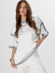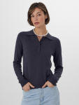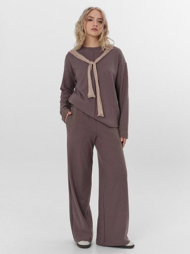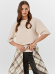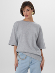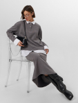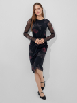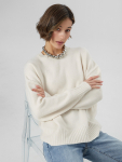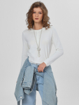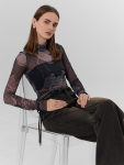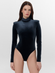 Джемпер прилегающего силуэта. Перед и спинка цельнокроеные. Драпировка в боковом шве с жилкой тканой 6мм Е7112 arteks. Горловина обработана обтачкой из основного полотна. Одно плечо спущено. Низ изделия и рукавов обработаны швом вподгибу. Внутри держатели из репсовой ленты SFLR-4 5мм цв.черный (SFLR-3 5мм цв.белый по заданию).