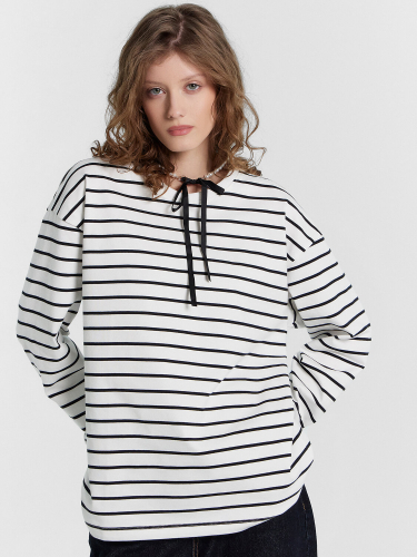 Полосатый лонгслив женский из высококачественного хлопка, свободного силуэта. Вырез круглый, рукава длинные на манжетах. Спущенная линия плеча и углубленные проймы дарят свободу движений. Отличный вариант для создания интересных образов. Тельняшка – это тренд уже несколько лет. За счет хорошей плотности материала, эта модель не просвечивает, а швы не натирают кожу. Лонгслив женский с длинным рукавом очень удобный и комфортный, с ним легко можно составить массу интересных аутфитов для городских будней. Если вам надоели привычные базовые свитшоты, этот базовый лонгслив — отличное решение! Дополнить джемпер женский оверсайз из хлопка можно стильным низом из линейки базовой одежды для женщин. Широкий размерный ряд и красивые расцветки, есть модели для девушек plus-size. Рекомендуем!
