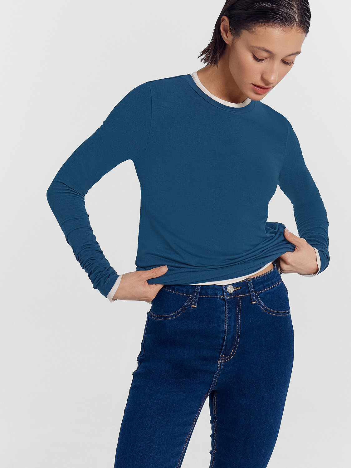 Стильный женский джемпер — базовая, модная вещь, которая добавит изюминку в любой образ. Классическая модель имеет прилегающий крой с круглым вырезом горловины, который элегантно обрамляет шею и придает женственность. Рукава длинные и удобные, с прорезью для большого пальца, что обеспечивает свободу движений и комфорт в носке. Выполнен из кулирного полотна. Благодаря использованию высококачественного натурального материала, джемпер гарантирует тепло и уют в холодное время года. Хорошо сохраняет форму и не теряет свой внешний вид после стирки. Вы можете создавать красивые аутфиты с помощью этого джемпера, в зависимости от своих предпочтений и настроения. Рекомендуем!