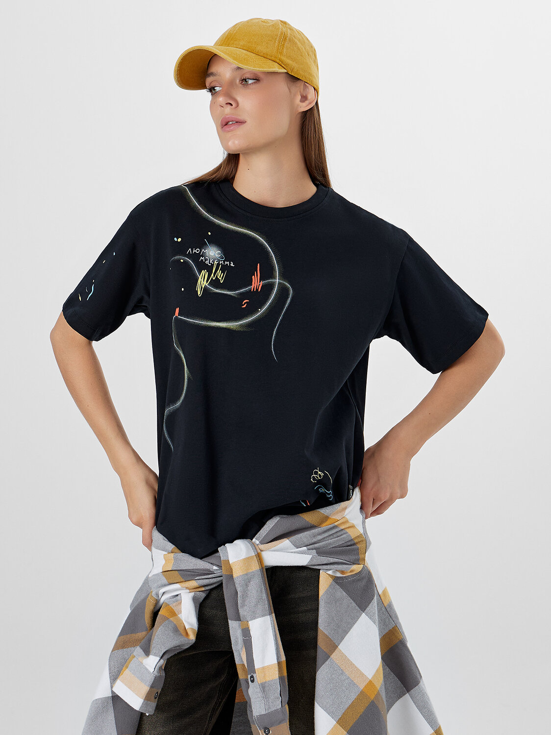 Женская футболка свободного силуэта - это прекрасный выбор для создания стильного и комфортного образа. Модель выполнена из нежной хлопковой кулирки, гарантирующей мягкость и отличную воздухопроницаемость. Круглый вырез и спущенная линия плеча обеспечивают свободу движений, а широкие рукава, чуть выше локтя, добавляют легкости и непринужденности. Эта стильная футболка станет базовым элементом вашего гардероба, идеально сочетающимся с различными нарядами и подходящим для любого случая.