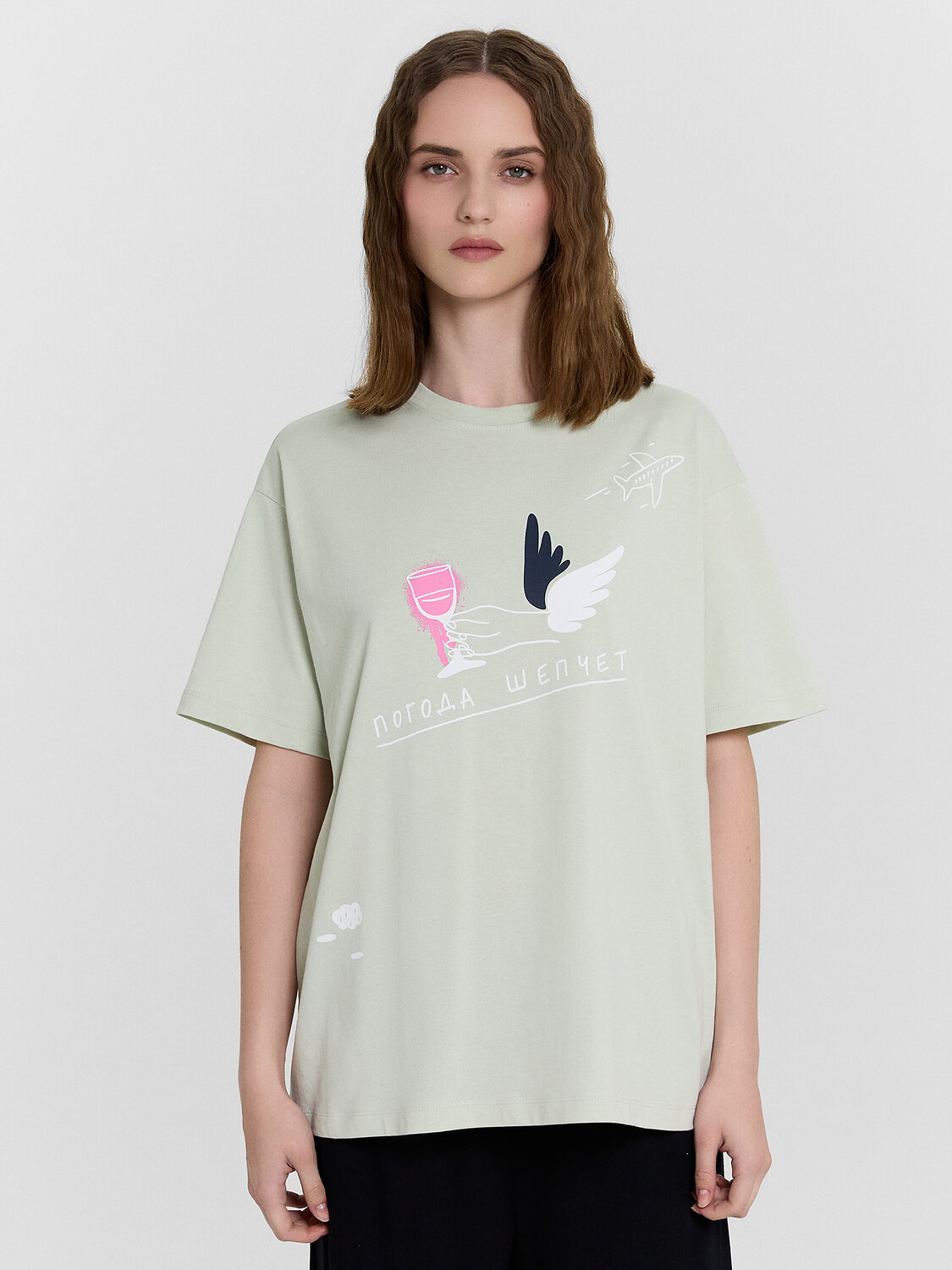 Хлопковая футболка свободного силуэта из трикотажного полотна кулирка. Горловина круглой формы. Свободу движений гарантируют спущенная линия плеча и углубленная пройма. Рукава широкие, чуть выше локтя. Стильная модель!
