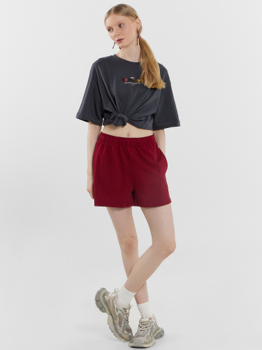 Хлопковая футболка свободного силуэта из трикотажного полотна кулирка. Горловина круглой формы. Свободу движений гарантируют спущенная линия плеча и углубленная пройма. Рукава широкие, чуть выше локтя. Стильная модель!
