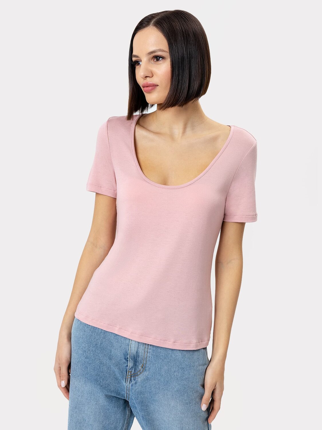 Футболка regular fit с небольшой степенью облегания с короткими рукавами из высококачественного хлопка. Имеет глубокий овальный вырез, который красиво открывает декольте. Материал изделия мягкий, комфортный к телу, хорошо пропускает воздух, хорошо тянется. Футболка классической длины. Однотонная, что позволяет собрать с ней разные образы для городских будней. Футболка — вещь, необходимая в гардеробе каждой девушки, ее без проблем можно сочетать с другими базовыми предметами женского гардероба, а классический фасон делает ее универсальной для повседневной носки. Футболка подойдет как для прогулок и для важных встреч. Стильная и комфортная, если вы хотите освежить свой образ и разбавить гардероб новой вещью, она вам точно понравится. Порадуйте себя стильным подарком от Mark Formelle из линейки базовой одежды для женщин!