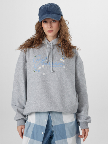 Худи с надписью — это уютная модель для повседневной носки. Худи свободного кроя выполнено из мягкого трёхниточного футера с начесом, который сохраняет тепло и обеспечивает комфорт в прохладную погоду. Капюшон со шнурком и спущенная линия плеча создают расслабленный современный силуэт.
