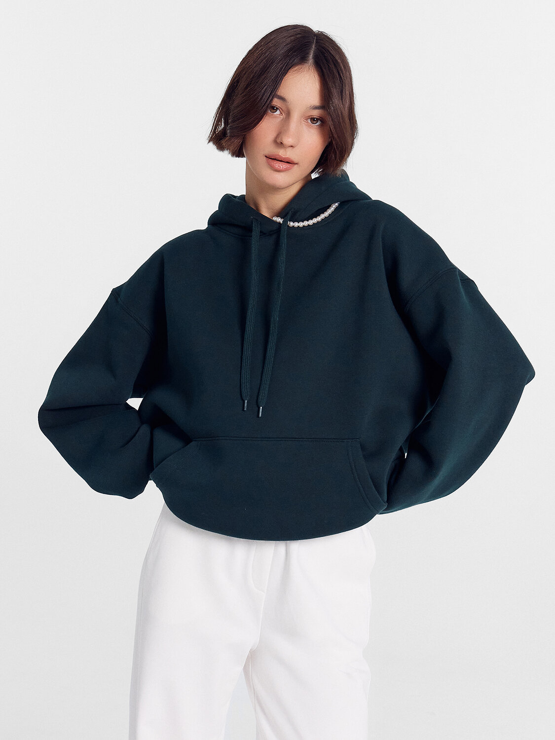 Женское худи оверсайз для создания повседневных расслабленных образов. Оно имеет капюшон на кулиске, обеспечивающий дополнительный уют и защиту от ветра. Длинные рукава со спущенной линией плеча и эластичными манжетами из рибаны добавляют комфорт и свободу движений. А накладной карман кенгуру позволяет удобно разместить необходимые мелочи или согреть руки. Для выполнения этого худи использовали нежный футер с подчесом, который эффективно сохраняет тепло и обеспечивает мягкость и уют в холодное время года.