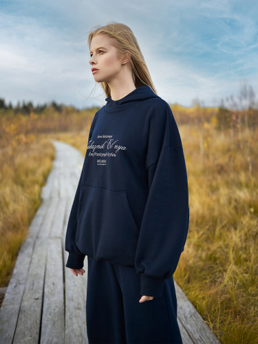 Это женское худи оверсайз - идеальное сочетание стиля и комфорта. Горловина круглой формы с капюшоном на подкладке из кулирки обеспечивает дополнительное тепло и уют. Спереди – накладной карман кенгуру, который добавляет удобство и функциональность, позволяя хранить мелочи под рукой. Длинные рукава с манжетами из рибаны обеспечивают надежную посадку и сохраняют тепло, а спущенная линия плеча придает модели актуальный и расслабленный вид. Пояс из рибаны по низу изделия завершает стильный образ и обеспечивает дополнительный комфорт. Худи, выполненное из футера с мягким подчесом, подарит вам ощущение уюта и тепла в холодное время года. Оно станет незаменимым элементом вашего гардероба, подходящим как для повседневного ношения, так и для активного отдыха. Эта модель идеально сочетает в себе практичность и стиль, делая ваш образ завершенным и непринужденным.