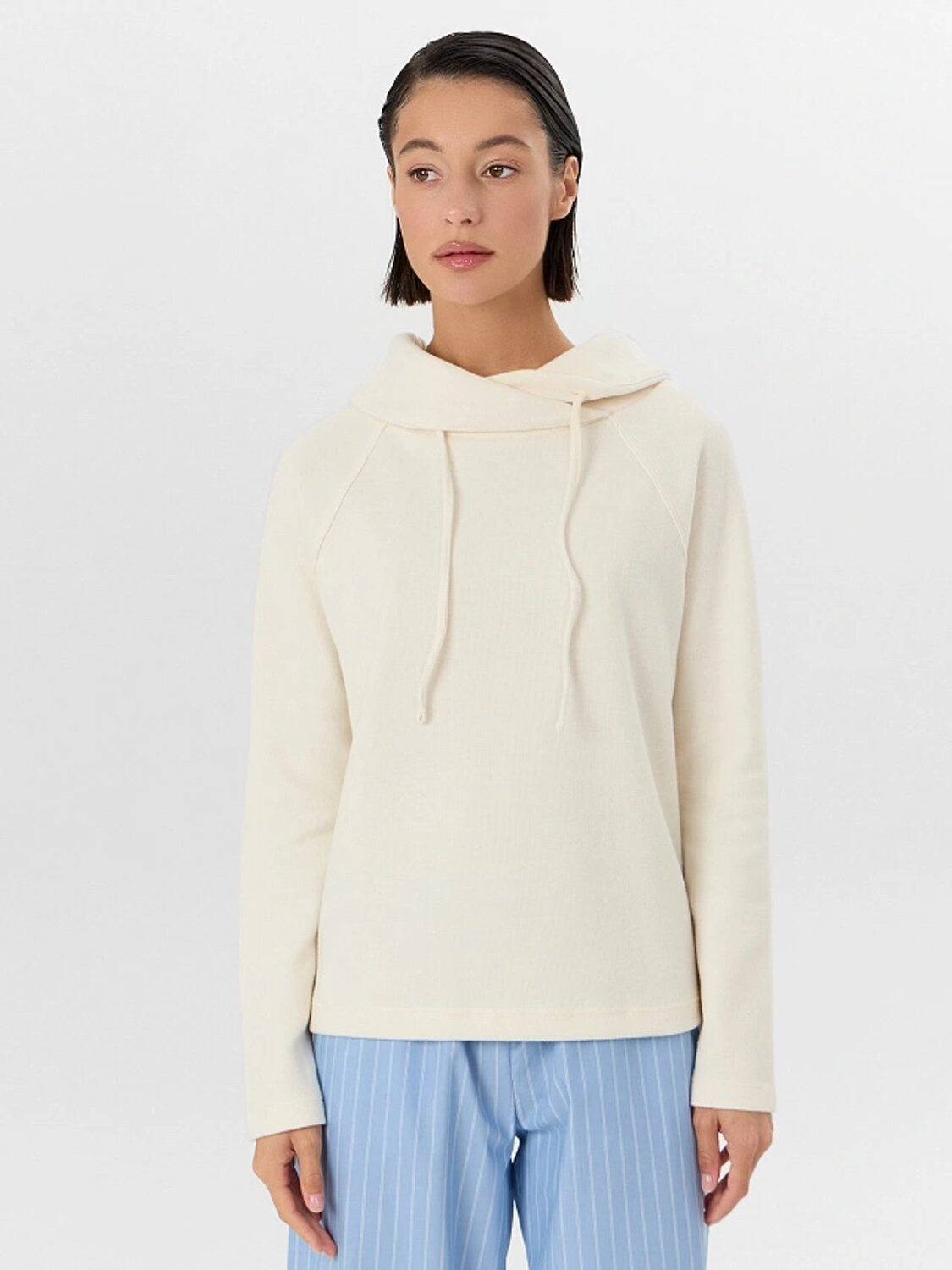 Худи домашнее — это воплощение уюта и стиля для вашего отдыха. Модель прямого силуэта из мягкого материала селаник обеспечивает комфорт, воздухопроницаемость и долговечность. Свободный крой с удлиненными рукавами и круглой горловиной с уютным воротником не сковывает движений, позволяя расслабиться после долгого дня. Нежный бежевый оттенок добавляет образу теплоты и легко сочетается с домашними брюками, пижамными шортами или легинсами.