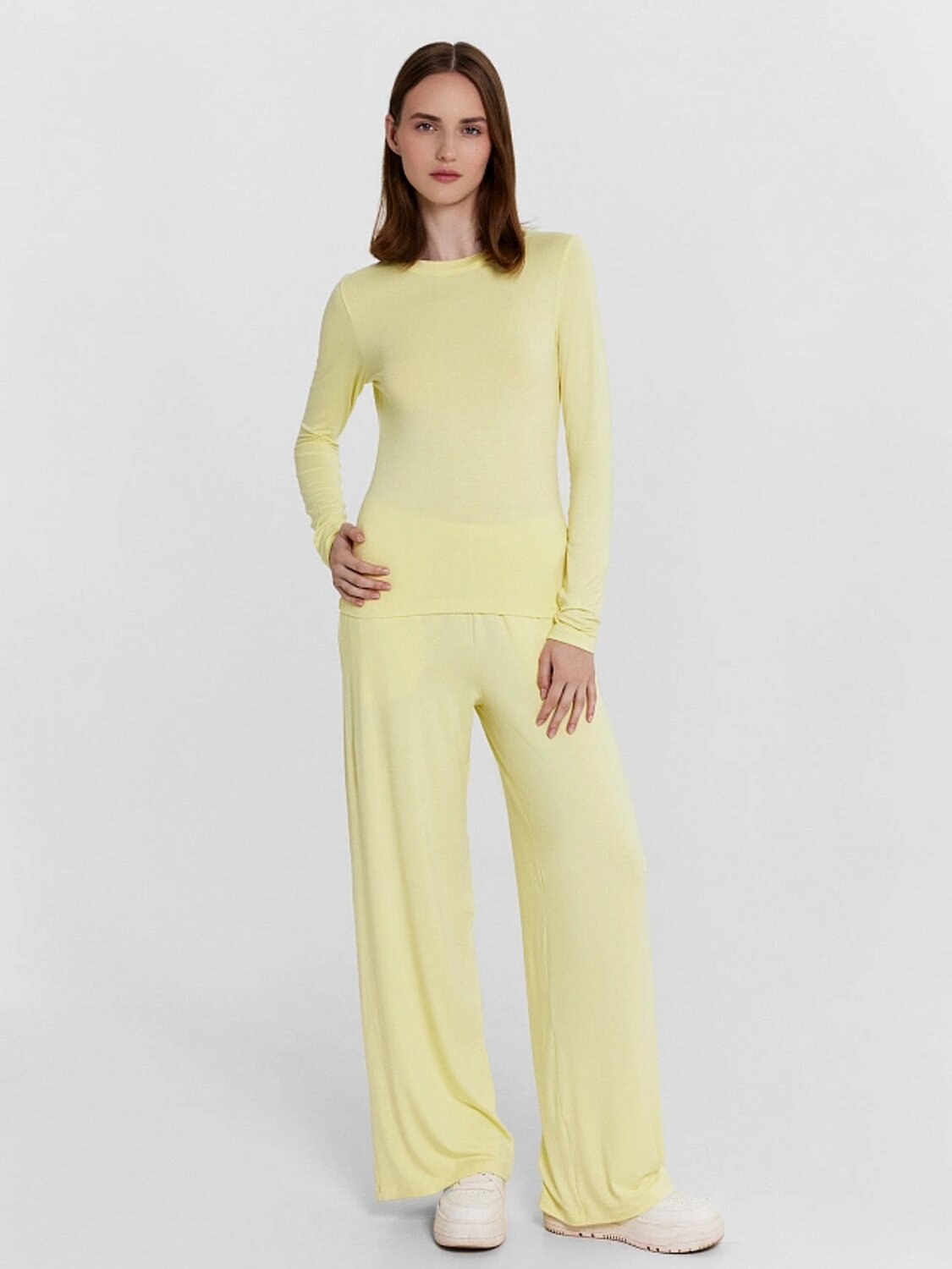 Женский комплект Mark Formelle— стильное и комфортное решение для летнего сезона. Лонгслив прилегающего силуэта мягко подчеркивает фигуру, а круглая горловина и длинные узкие рукава создают элегантный и минималистичный образ. Благодаря обработке нижних срезов швом вподгибку, изделие сохраняет аккуратный вид и долговечность. Прямые брюки свободного кроя идеально дополняют комплект, обеспечивая свободу движений и легкость в носке. Средняя посадка делает модель универсальной, а эластичная тесьма внутри пояса гарантирует комфортную фиксацию. Карманы в боковых швах, добавляют практичности и удобства. Изготовленный из эластичной вискозы, комплект дарит мягкость, воздухопроницаемость и приятное ощущение на коже. Идеальный вариант для расслабленных прогулок, работы или уютного отдыха в летний день!