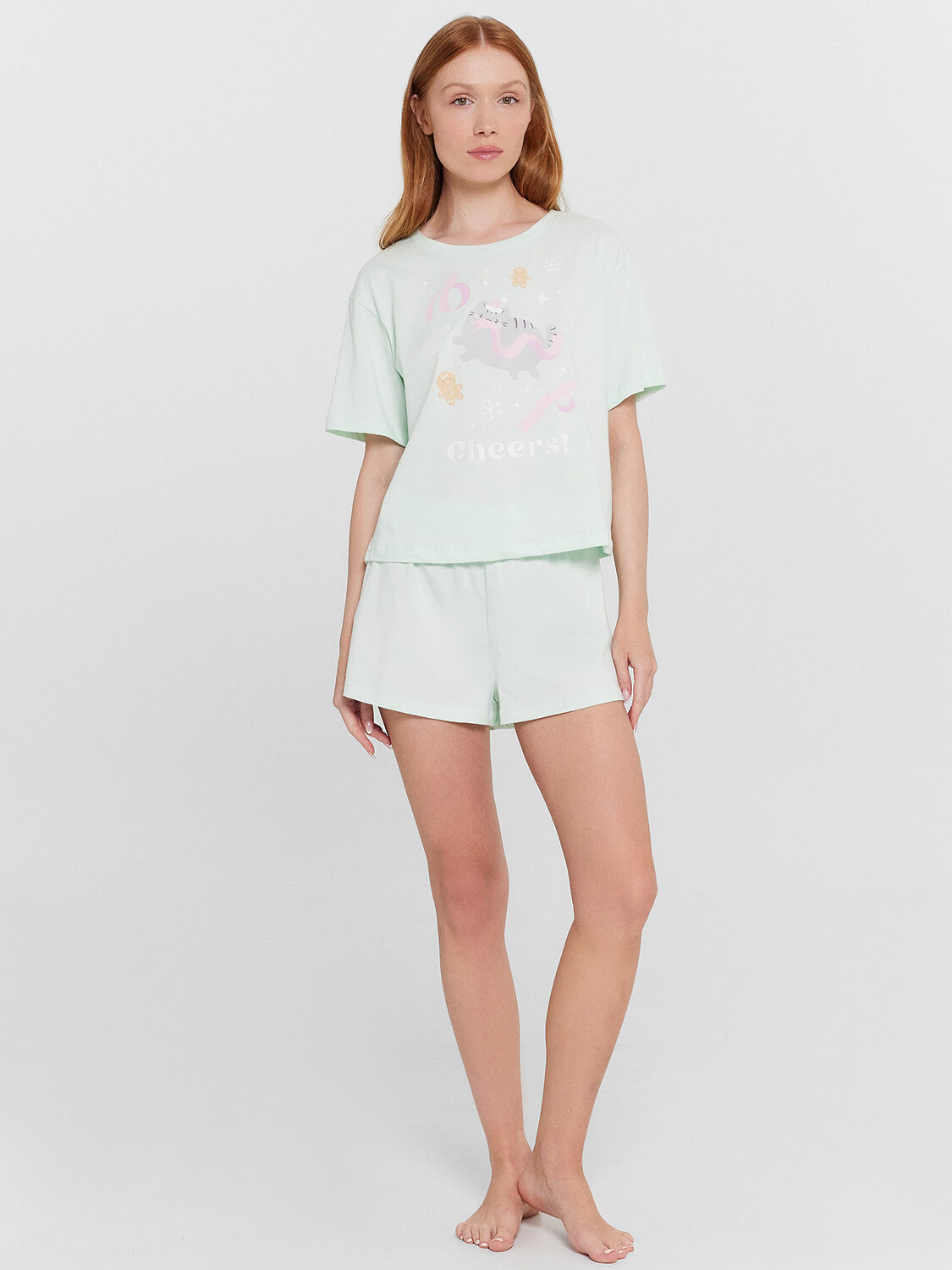 Женская пижама с принтом - отличный выбор для домашних образов. Футболка свободного силуэта с круглой горловиной и короткими рукавами со спущенной линией плеча добавляет легкости и расслабленности. Шорты свободного силуэта с эластичным поясом обеспечивают удобную посадку и свободу движений. Изделие выполнено из хлопковой кулирки - мягкого, дышащего материала, который позволяет коже оставаться сухой и комфортной в течение всего дня. Этот материал не вызывает раздражений и гипоаллергенен, что делает его идеальным для людей с чувствительной кожей. Кулирка также отличается долговечностью и прочностью, сохраняя свою форму и качество даже после многократных стирок. Эта пижама станет вашим любимым выбором для уютных вечеров и расслабленных выходных, предлагая комфорт и стиль в каждом элементе.