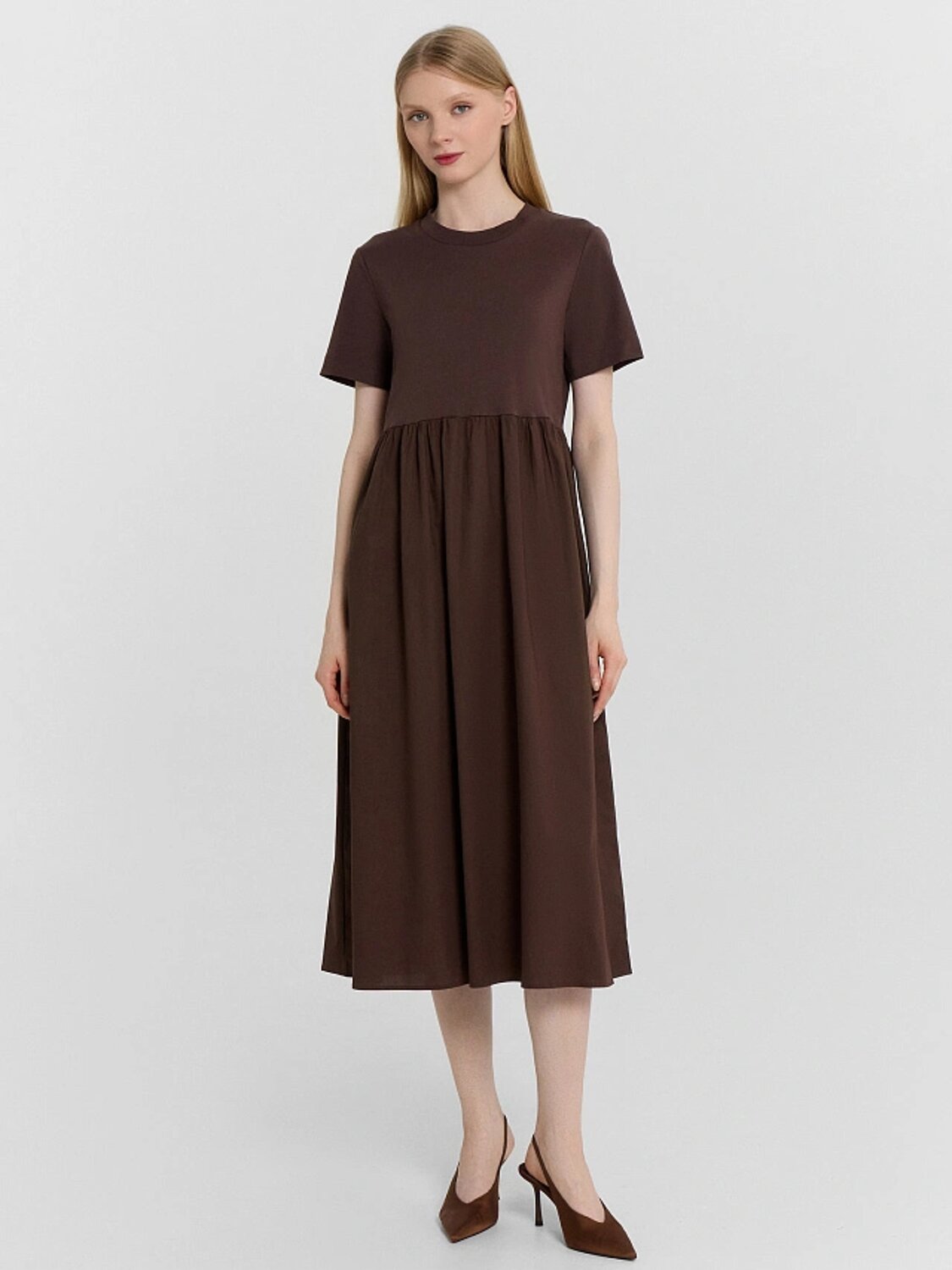 Женское платье свободного силуэта — элегантный и удобный вариант для повседневного гардероба, сочетающий комфорт, стиль и универсальность. Изделие выполнено из натурального хлопка, который отличается мягкостью, воздухопроницаемостью и приятными тактильными ощущениями. Хлопок позволяет коже дышать, создавая ощущение легкости и комфорта даже в жаркую погоду. Круглая горловина с обтачкой из рибаны обеспечивает аккуратную посадку, добавляя эластичности и удобства при носке. Слегка спущенное плечо и углубленная пройма придают расслабленный стиль, делая платье подходящим для повседневного образа. Короткие рукава добавляют легкость и делают модель идеальной для летнего сезона, обеспечивая свободу движений и комфорт. Отрезной крой по талии подчеркивает силуэт, а присборенный и расширяющийся к низу фасон создает легкость, женственность и элегантность в образе. Длина миди делает платье универсальным, подходящим как для прогулок, так и для более нарядных случаев. Прекрасный выбор для тех, кто ценит удобство, натуральные ткани и стильные детали!