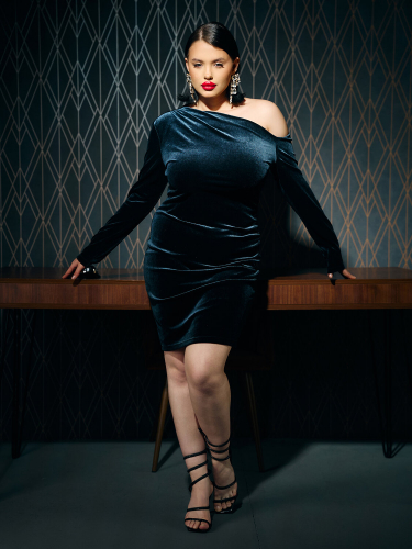 Платье выполнено из полиэстера с добавлением эластана. Этот состав обеспечивает ткани мягкость, легкое растяжение и идеальное облегание, а также помогает драпировкам сохранять свою форму на протяжении всего вечера.