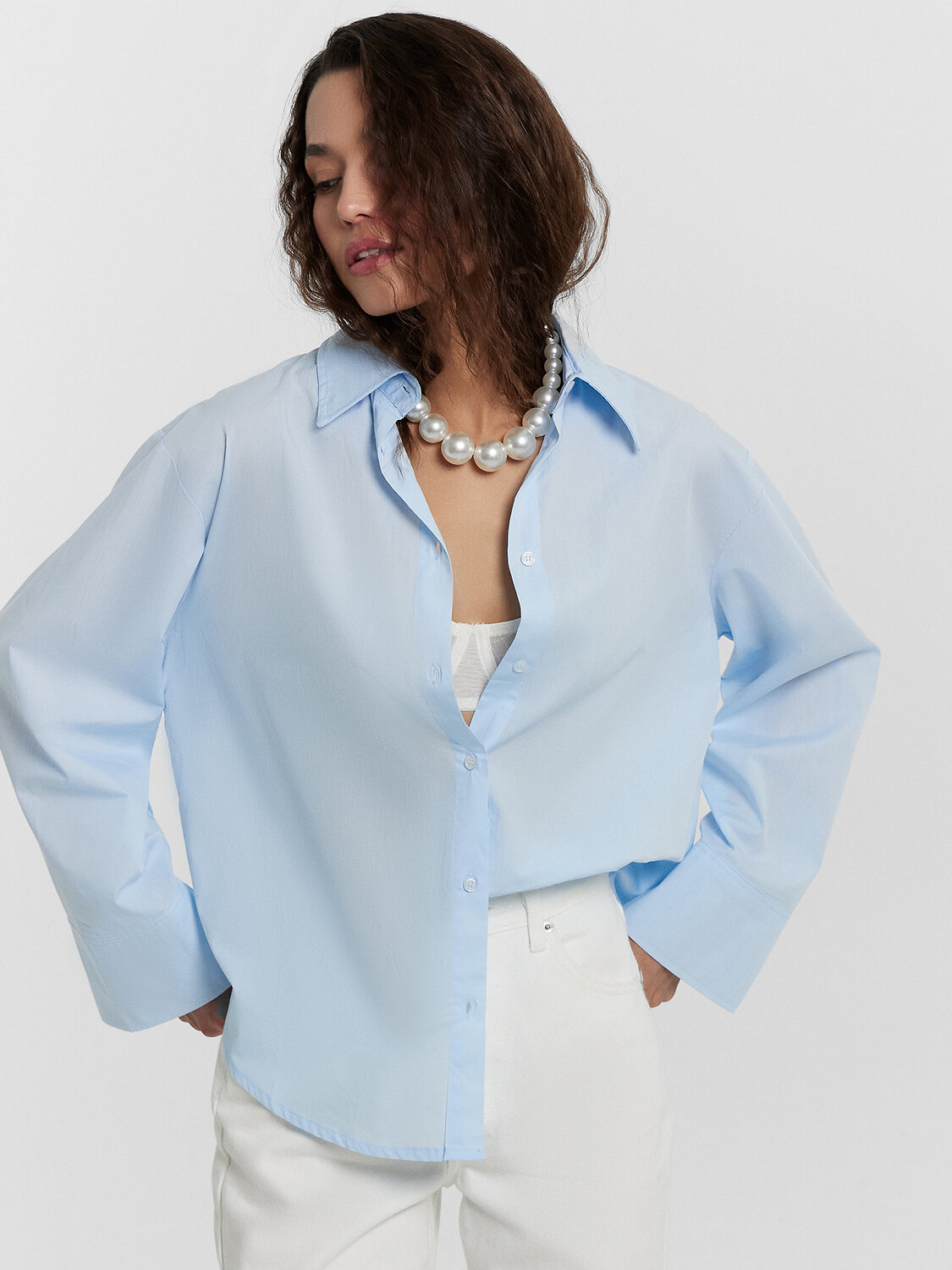 Познакомьтесь с универсальной однотонной рубашкой Mark Formelle — идеальным дополнением вашего базового гардероба! Модель свободного кроя сочетает в себе элегантность и комфорт, делая её подходящим выбором для множества повседневных и деловых образов. Застежка на пуговицах и отложной классический воротник придают рубашке стильный и аккуратный вид, а длинные широкие рукава с манжетами на пуговицах добавляют изысканности. Закругленный нижний край подчеркивает универсальность модели и создает мягкий, плавный силуэт. Для ее выполнения использовали натуральный хлопок, гарантирующий воздухопроницаемость, долговечность и комфорт на протяжении всего дня. Эта модель станет надежной основой вашего гардероба, отлично сочетающейся с брюками, юбками и джинсами для создания стильных и гармоничных комплектов. Рекомендуем!